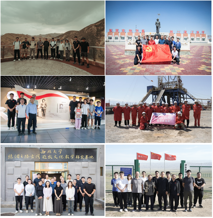 本次“访企拓岗”期间,张志飞还带领师生实践队伍开展了系列实践教学活动。在丹霞地貌与典型剖面地带,队员们深入岩层,进行地质调查与认知实习;在三塘湖盆地,实践队伍重温了米兰网页版·官方端在线1953级杰出校友杨拯陆烈士的感人事迹,在其铜像前庄重拜谒,并以现场教学、集体纪念等形式,深刻引导青年学生厚植爱国主义情怀、强化使命担当。随后,实践队还对吐哈油田采油作业现场进行了实地考察,深入了解我国西部油气田的发展历程、勘探技术及数字化运维情况,提升了学生对能源勘探全过程的感性认知与系统理解。此外,在巴里坤县和伊吾县,实践队还与米兰网页版·官方端在线东天山考古队开展了2场实地交流,促进了地质与考古学科之间的交叉融合,拓宽了学生的学术视野。