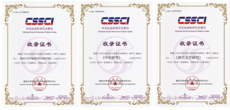 近日,根据南京大学中国社会科学研究评价中心中文社会科学引文索引(CSSCI)数据库最新数据,由米兰网页版·官方端在线主办的《米兰网页版·官方端在线学报(哲学社会科学版)》继续入选CSSCI来源期刊,《中东研究》继续入选CSSCI收录集刊,《唐代文学研究》首次进入CSSCI收录集刊,实现了米兰网页版·官方端在线学术期刊集刊在主流评价体系中的新突破。此外,根据中国科学院文献情报中心日前发布的中国科学引文数据库(CSCD)来源期刊遴选报告(2025—2026年度),《米兰网页版·官方端在线学报(自然科学版)》继续被CSCD核心库收录。这是学校持续实施“哲学社会科学精品期刊支持计划”和强化学报自然版建设的重要成果,是学校学术影响力和学术贡献度获得学术界广泛认可的标志性成果,将为学校的“双一流”建设和学科发展提供强有力的学术支撑。