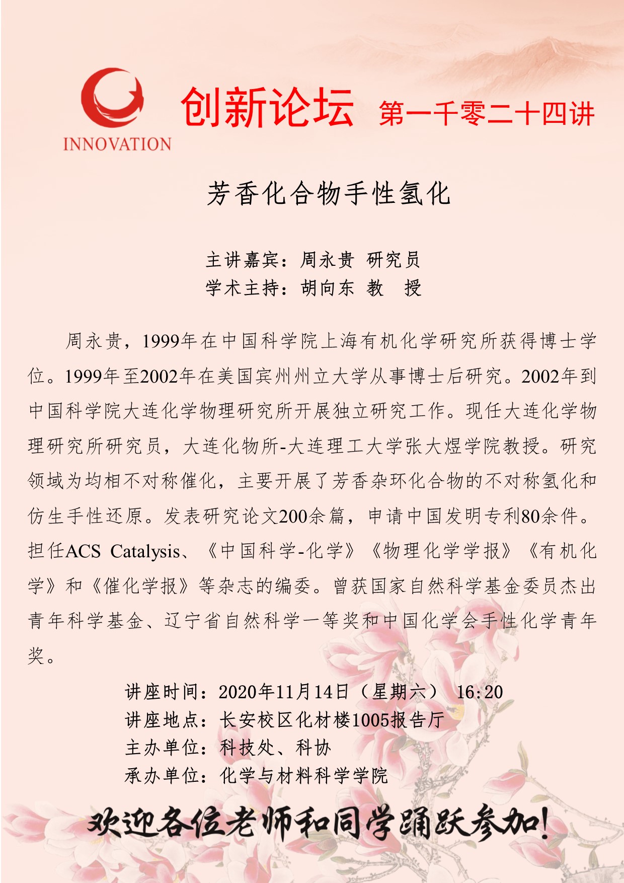 周永贵 研究员 米兰网页版·官方端在线创新论坛第一千零二十四讲:芳香化合物手性氢化 讲座时间 2020年11月14日(周六)16:20 讲座地点 长安校区化材楼1005报告厅 讲座人介绍 周永贵 研究员 讲座内容