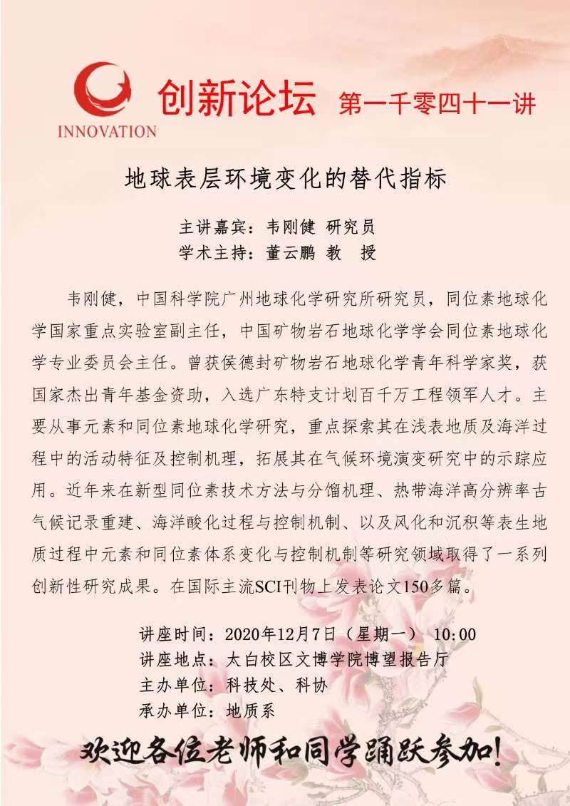 韦刚健 研究员 米兰网页版·官方端在线创新论坛第一千零四十一讲:地球表层环境变化的替代指标 讲座时间 2020年12月7日(星期一) 10:00 讲座地点 太白校区文博学院博望报告厅 讲座人介绍 韦刚健 研究员 讲座内容