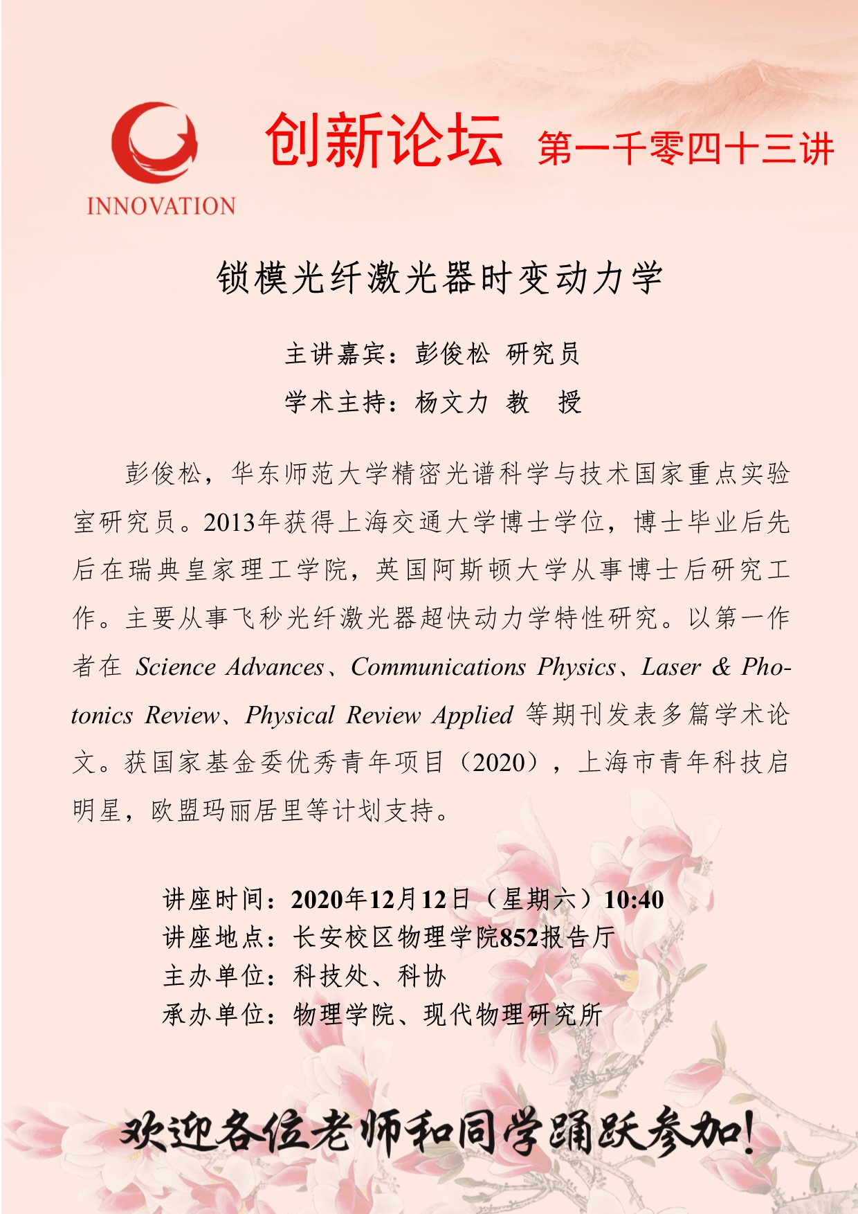 彭俊松 研究员 米兰网页版·官方端在线创新论坛第一千零四十三讲:锁模光纤激光器时变动力学 讲座时间 2020年12月12日(星期六)10:40 讲座地点 长安校区物理学院852报告厅 讲座人介绍 彭俊松 研究员 讲座内容