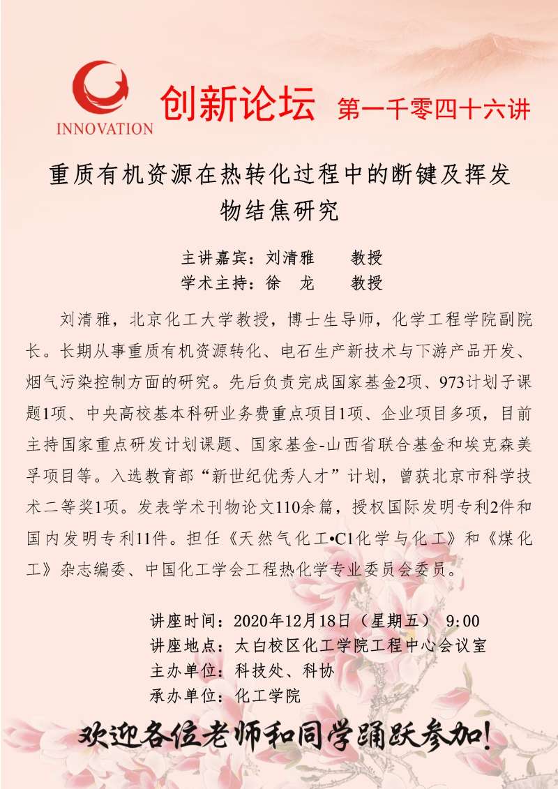 刘清雅 教授 米兰网页版·官方端在线创新论坛第一千零四十六讲:重质有机资源在热转化过程中的断键及挥发物结焦研究 讲座时间 2020年12月18日(星期五) 9:00 讲座地点 太白校区化工学院工程中心会议室 讲座人介绍 刘清雅 教授 讲座内容