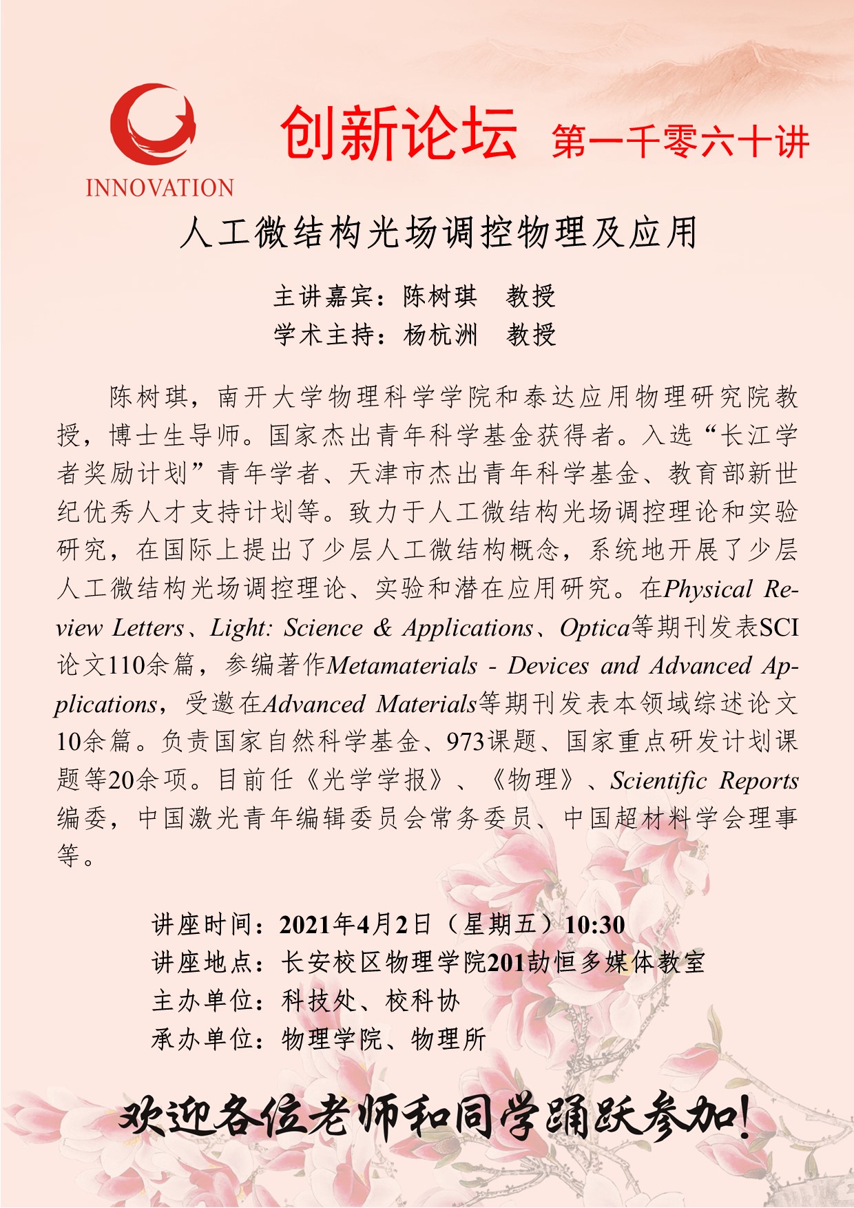 陈树琪 教授 米兰网页版·官方端在线创新论坛第一千零六十讲:人工微结构光场调控物理及应用 讲座时间 2021年4月2日(星期五)10:30 讲座地点 长安校区物理学院201劼恒多媒体教室 讲座人介绍 陈树琪 教授 讲座内容