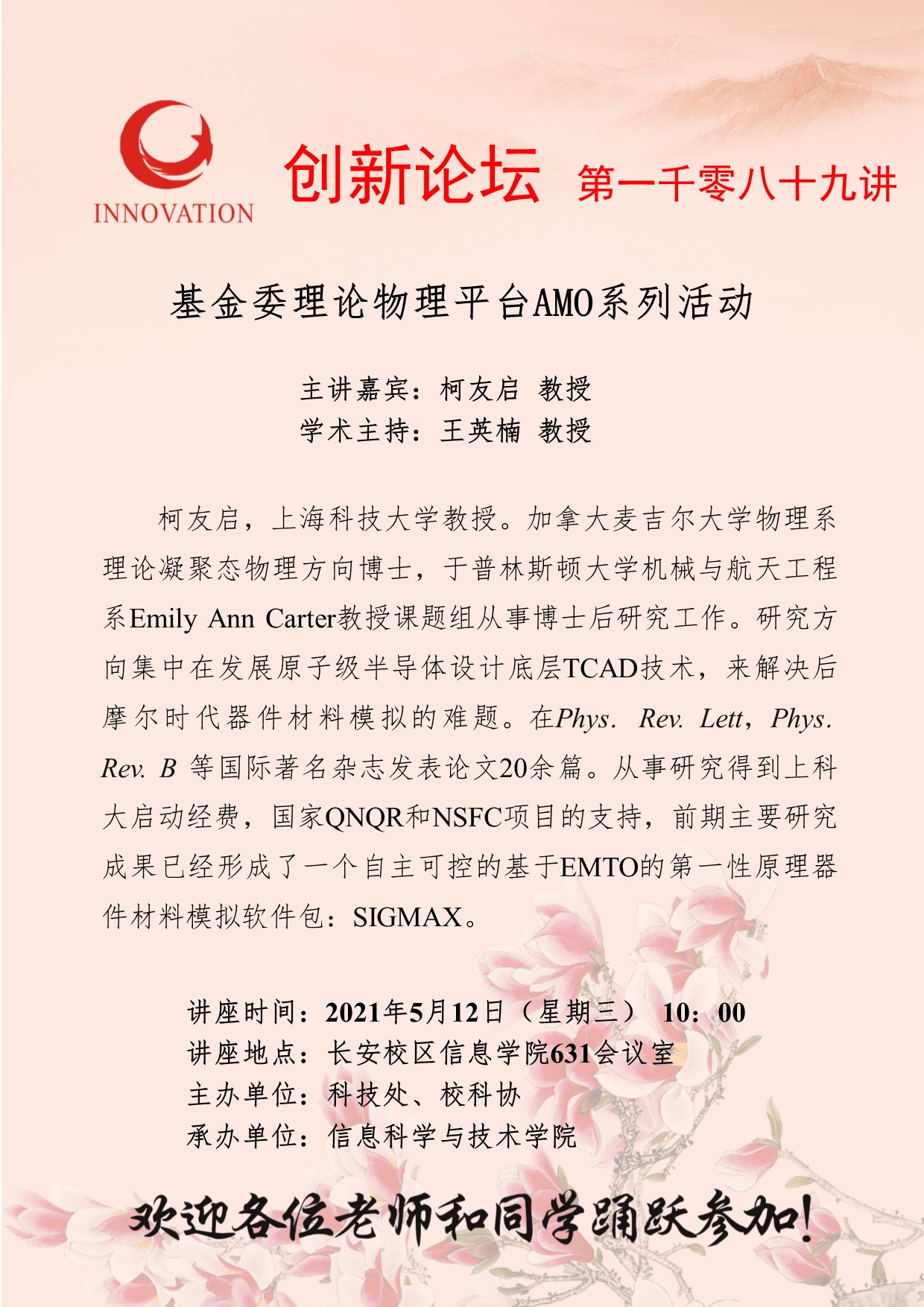 柯友启 教授 米兰网页版·官方端在线创新论坛第一千零八十九讲:基金委理论物理平台AMO系列活动 讲座时间 2021年5月12日(星期三) 10:00 讲座地点 长安校区信息学院631会议室 讲座人介绍 柯友启 教授 讲座内容