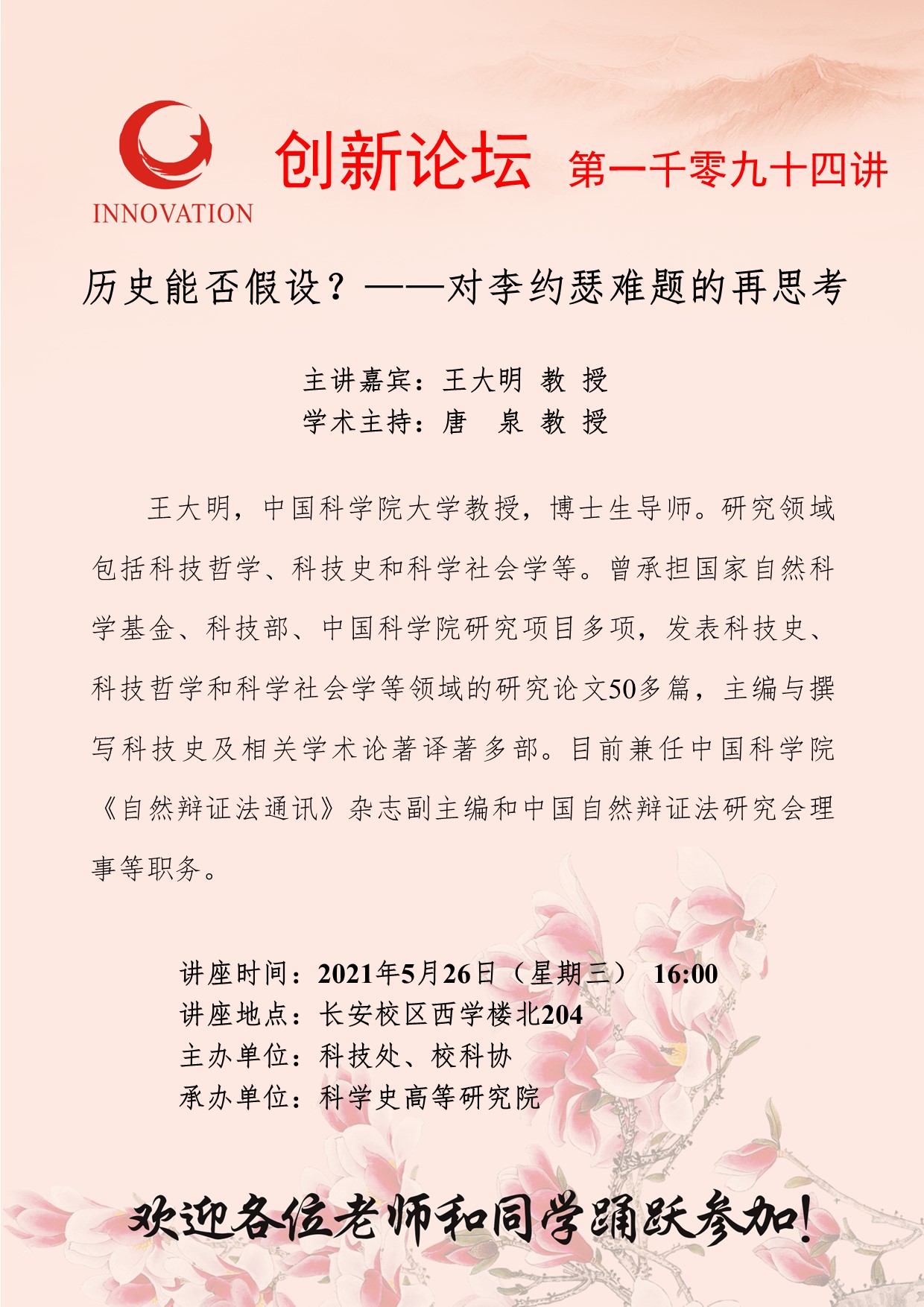 王大明 教 授 米兰网页版·官方端在线创新论坛第一千零九十四讲:历史能否假设?——对李约瑟难题的再思考 讲座时间 2021年5月26日(星期三) 16:00 讲座地点 长安校区西学楼北204 讲座人介绍 王大明 教 授 讲座内容