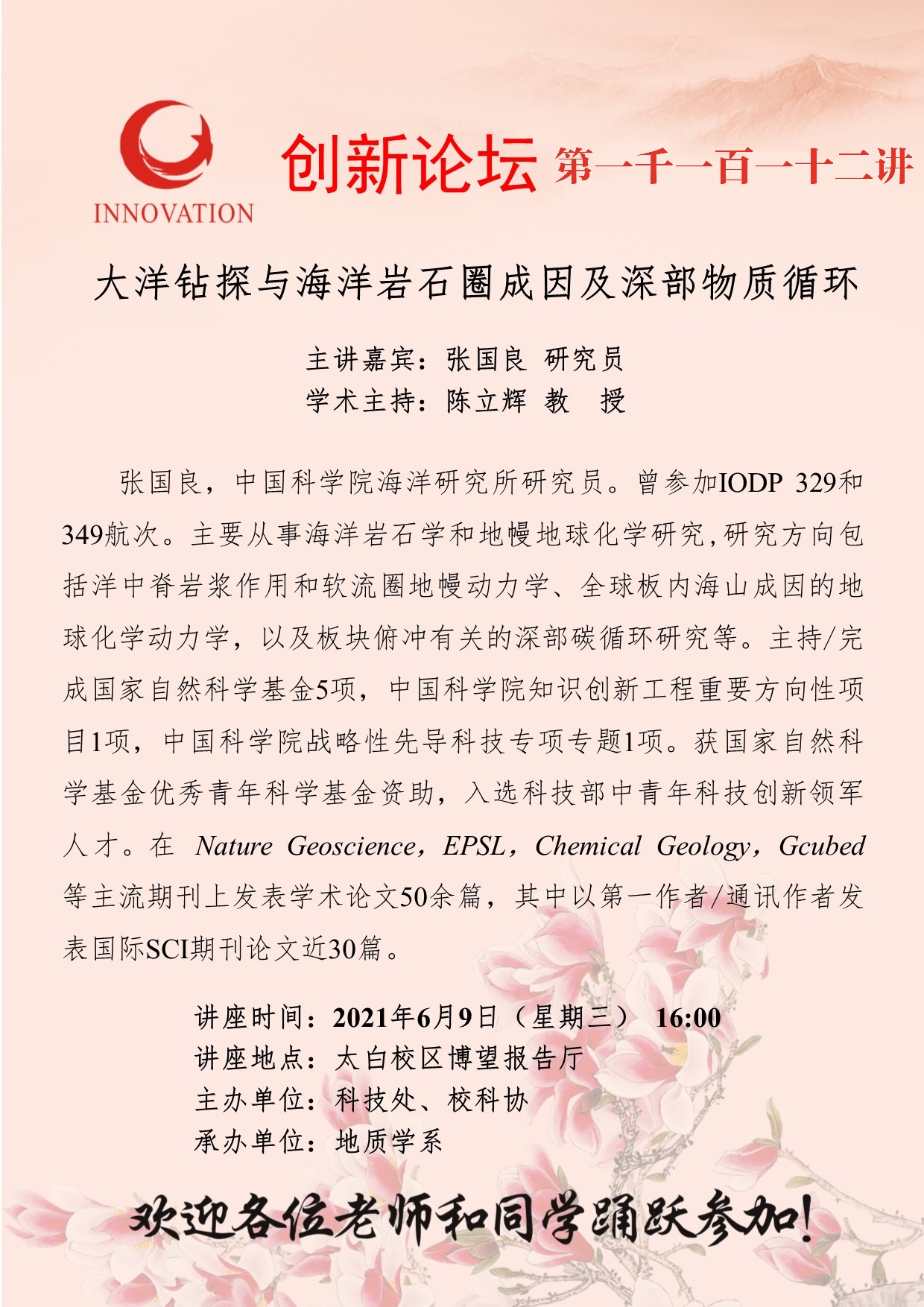 张国良 研究员 米兰网页版·官方端在线创新论坛第一千一百一十二讲:大洋钻探与海洋岩石圈成因及深部物质循环 讲座时间 2021年6月9日(星期三) 16:00 讲座地点 太白校区博望报告厅 讲座人介绍 张国良 研究员 讲座内容