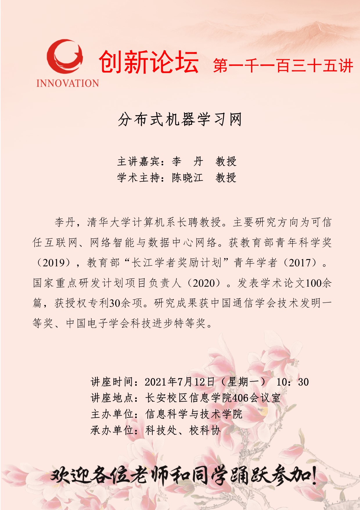 李丹 教授 米兰网页版·官方端在线创新论坛第一千一百三十五讲:分布式机器学习网 讲座时间 2021年7月12日(星期一)10:30 讲座地点 长安校区信息学院406会议室 讲座人介绍 李丹 教授 讲座内容