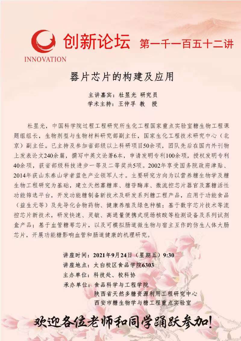 杜昱光 研究员 米兰网页版·官方端在线创新论坛第一千一百五十二讲:器片芯片的构建及应用 讲座时间 2021年9月24日(星期五)9:30 讲座地点 太白校区食品学院6303 讲座人介绍 杜昱光 研究员 讲座内容