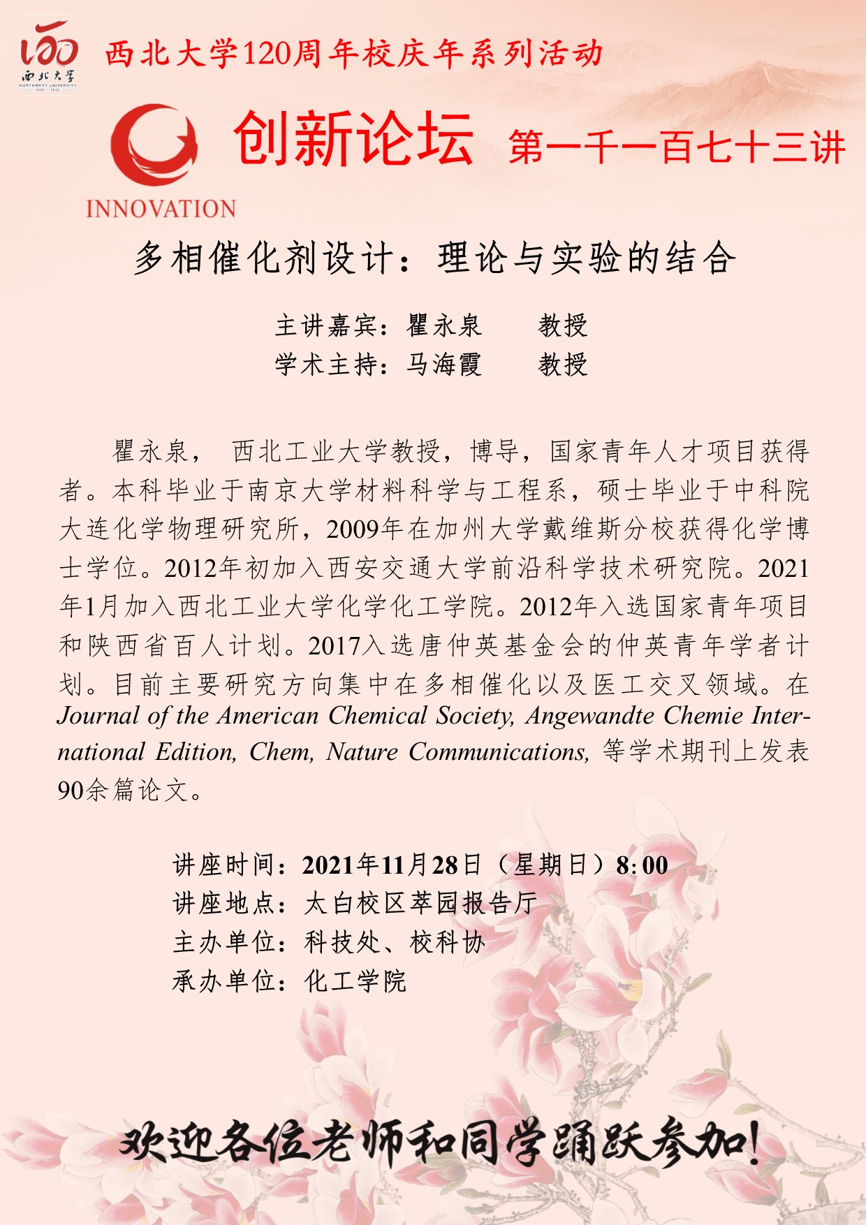 瞿永泉 教授 米兰网页版·官方端在线创新论坛第一千一百七十三讲暨120周年校庆年系列活动:多相催化剂设计:理论与实验的结合 讲座时间 2021年11月28日(星期日)8:00 讲座地点 太白校区萃园报告厅 讲座人介绍 瞿永泉 教授 讲座内容