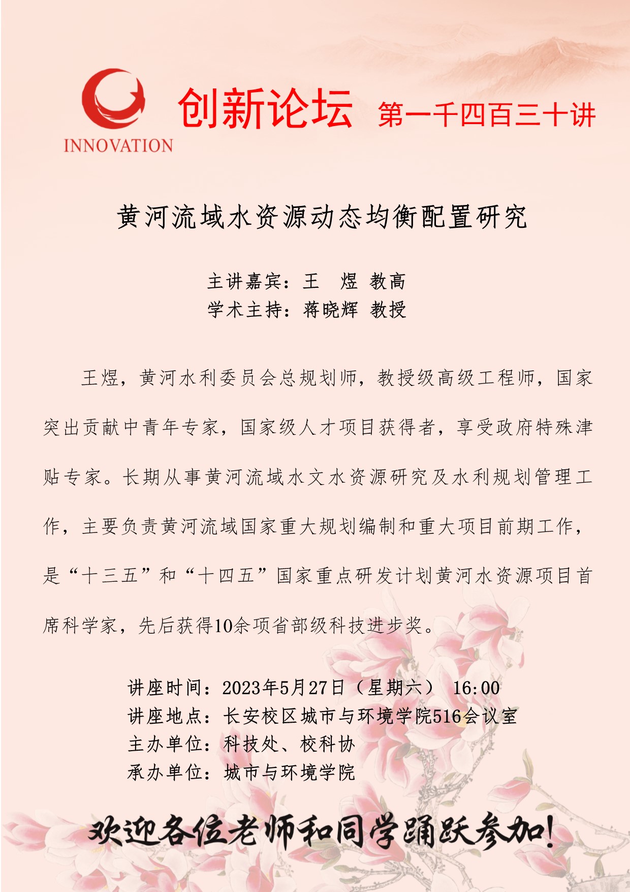 王 煜 教高 米兰网页版·官方端在线创新论坛第一千四百三十讲:黄河流域水资源动态均衡配置研究 讲座时间 2023年5月27日(星期六) 16:00 讲座地点 长安校区城市与环境学院516会议室 讲座人介绍 王 煜 教高 讲座内容