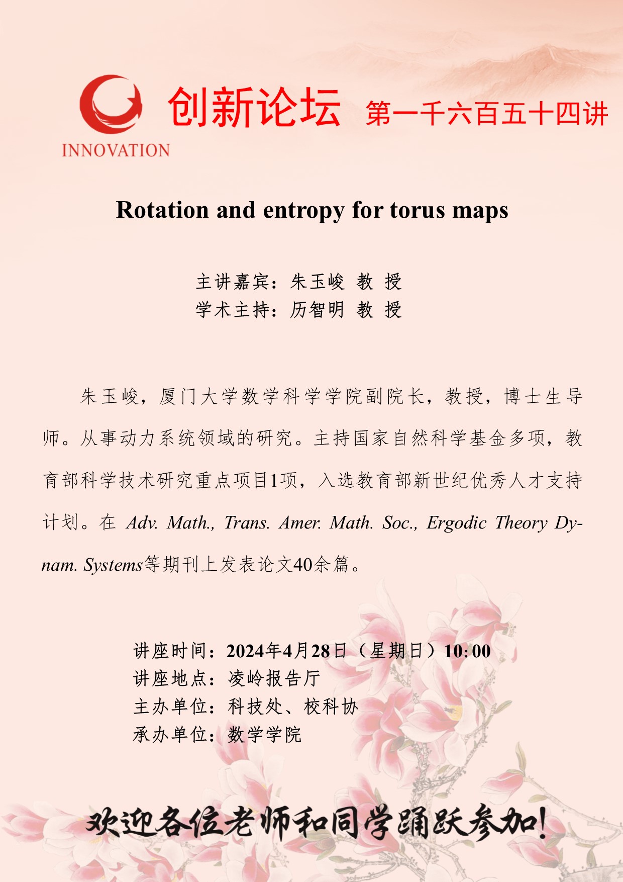 朱玉峻 教授 米兰网页版·官方端在线创新论坛第一千六百五十四讲:Rotation and entropy for torus maps 讲座时间 2024年4月28日(星期日)10:00 讲座地点 凌岭报告厅 讲座人介绍 朱玉峻 教授 讲座内容