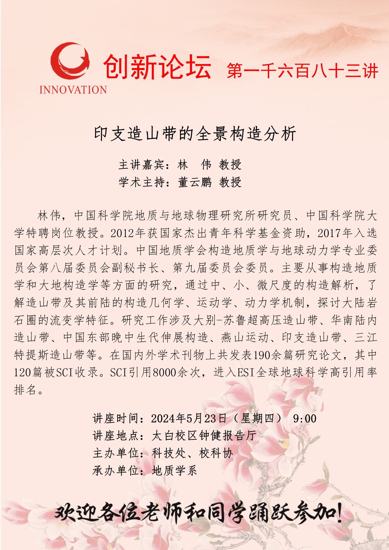 林 伟 教授 米兰网页版·官方端在线创新论坛第一千六百八十三讲:印支造山带的全景构造分析 讲座时间 2024年5月23日(星期四) 9:00 讲座地点 太白校区钟健报告厅 讲座人介绍 林 伟 教授 讲座内容