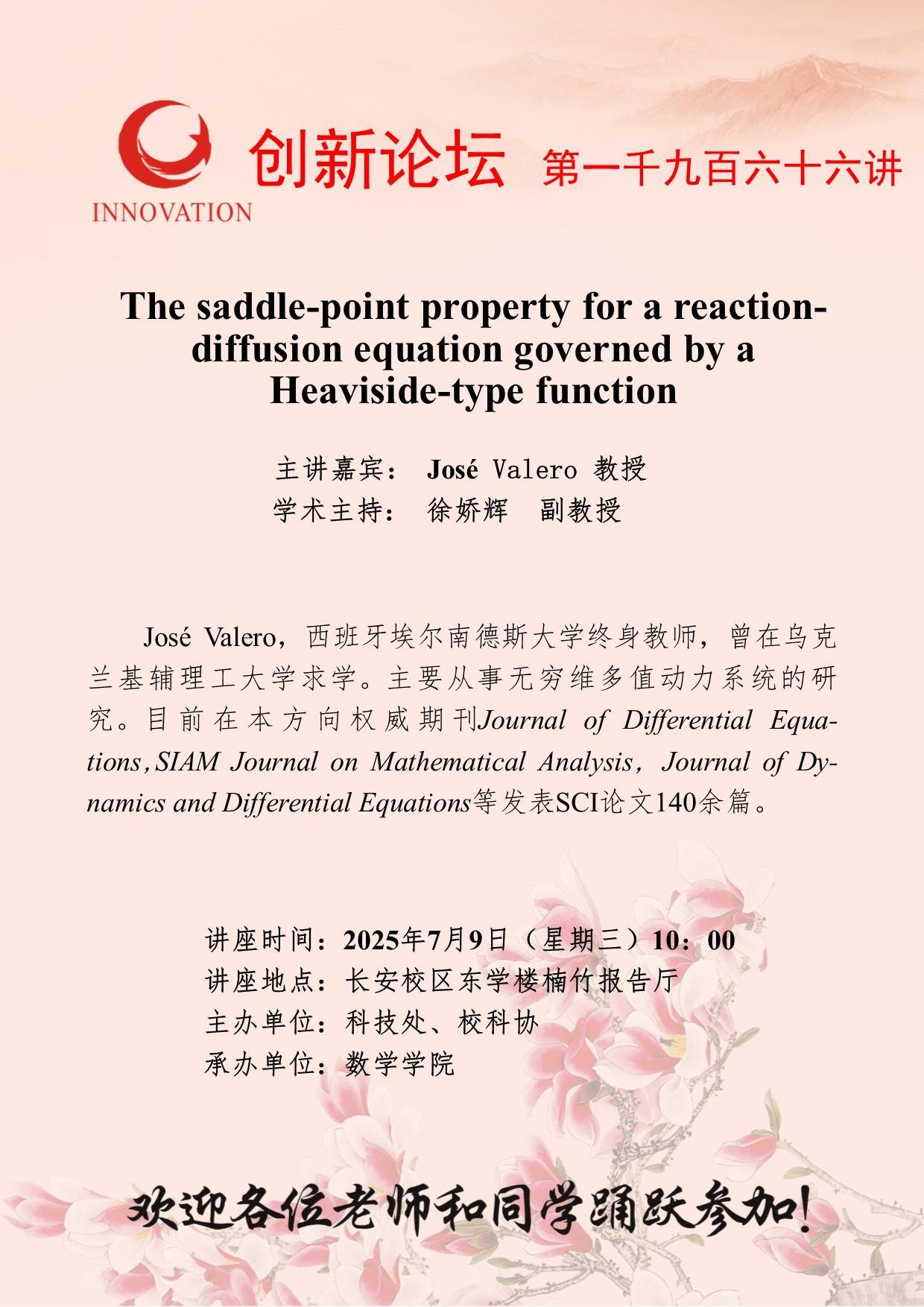 José Valero 教授 米兰网页版·官方端在线创新论坛第一千九百六十六讲:The saddle-point property for a reaction-diffusion equation governed by a Heaviside-type function 讲座时间 2025年7月9日(星期三)10:00 讲座地点 长安校区东学楼楠竹报告厅 讲座人介绍 José Valero 教授 讲座内容