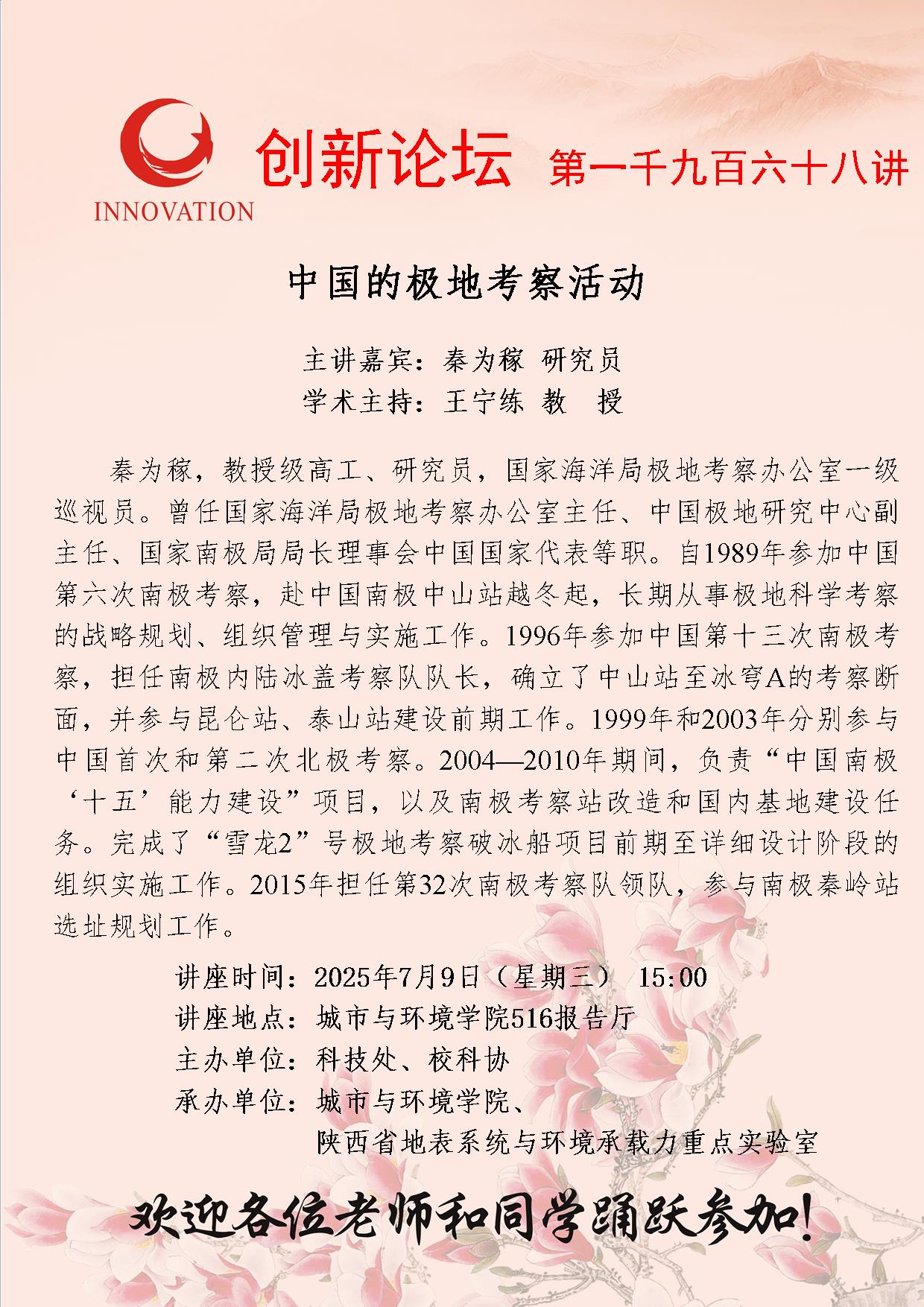 秦为稼 研究员 米兰网页版·官方端在线创新论坛第一千九百六十八讲:中国的极地考察活动 讲座时间 2025年7月9日(星期三) 15:00 讲座地点 城市与环境学院516报告厅 讲座人介绍 秦为稼 研究员 讲座内容