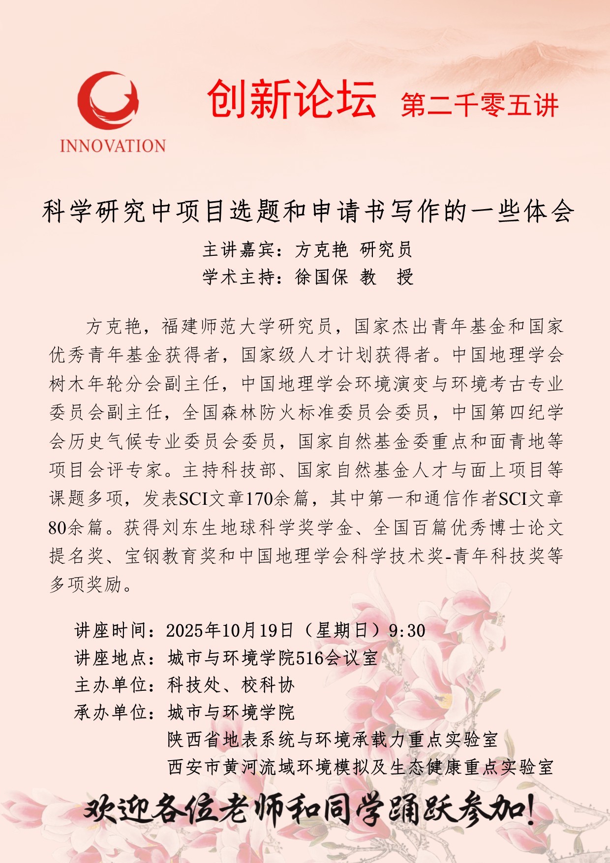 方克艳 研究员 米兰网页版·官方端在线创新论坛第二千零五讲:科学研究中项目选题和申请书写作的一些体会 讲座时间 2025年10月19日(星期日)9:30 讲座地点 城市与环境学院516会议室 讲座人介绍 方克艳 研究员 讲座内容
