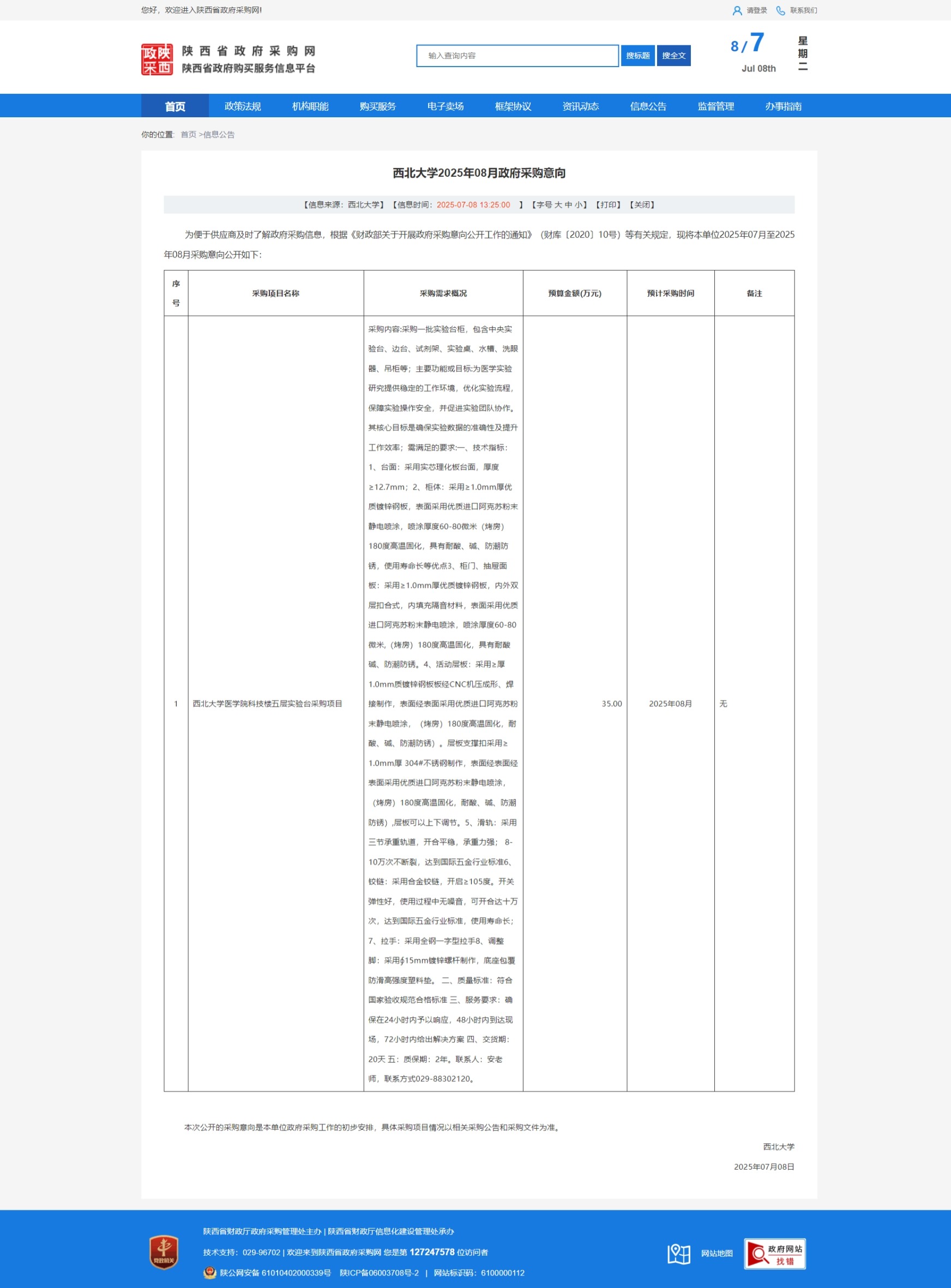 米兰网页版·官方端在线2025年08月政府采购意向 作者: 编辑:采购与招标办公室 时间:2025-07-08 原公告链接:https://www.ccgp-shaanxi.gov.cn/freecms/site/shaanxi/ggxx/info/2025/8a69c68d97d2c4550197e87d6842455f.html?noticeType=59¬iceId=e4cb9cdd-5bbd-11f0-8063-08c0eb20c666