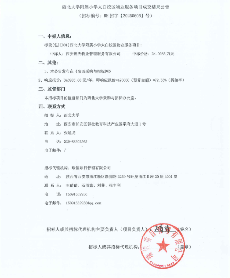 米兰网页版·官方端在线附属小学太白校区物业服务项目成交结果公告