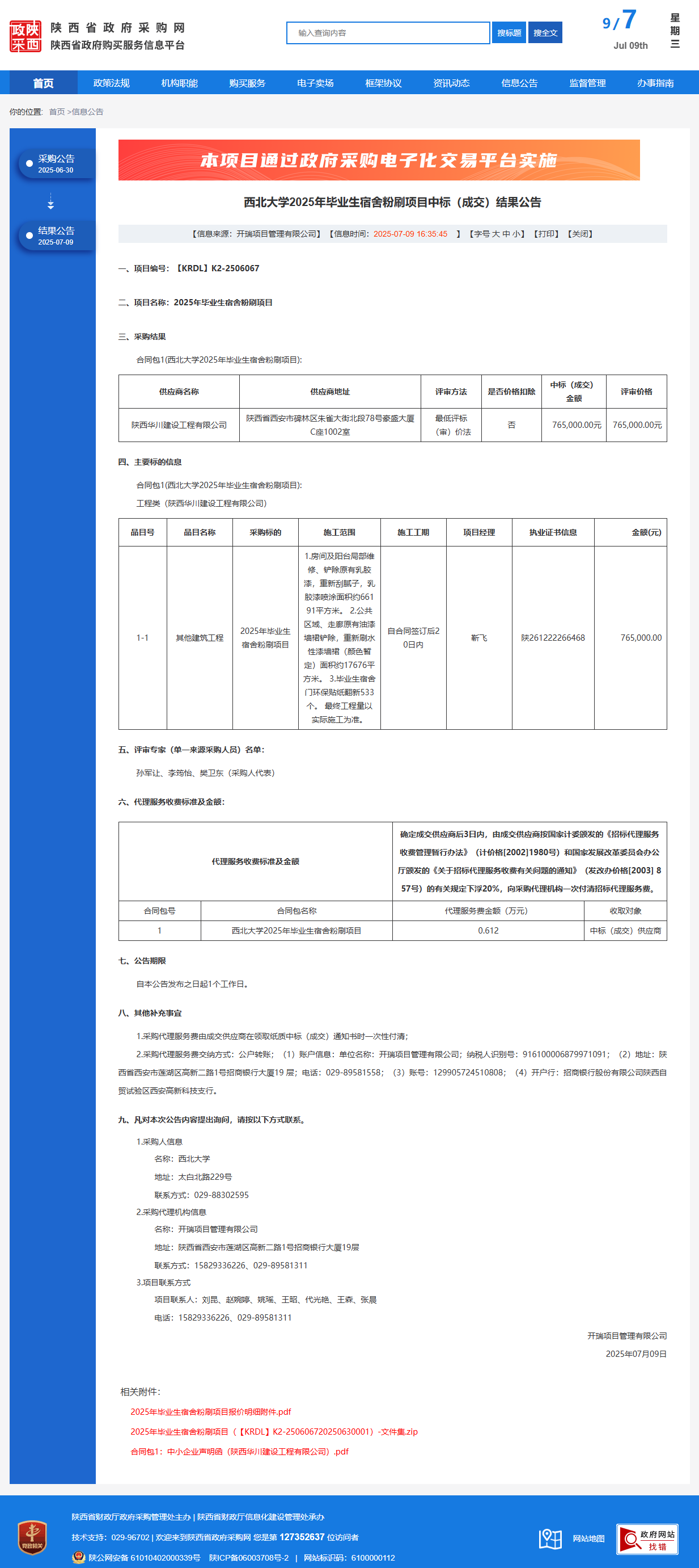 米兰网页版·官方端在线2025年毕业生宿舍粉刷项目中标(成交)结果公告