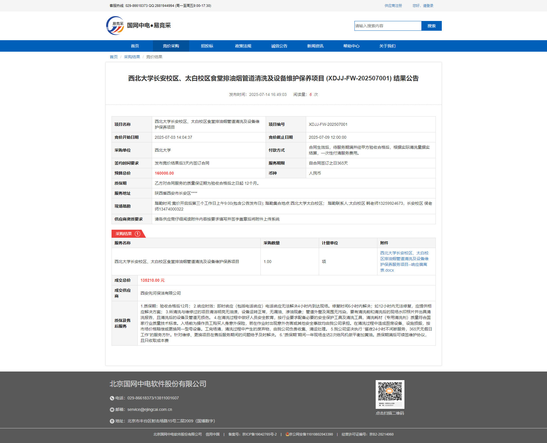 米兰网页版·官方端在线长安校区、太白校区食堂排油烟管道清洗及设备维护保养项目 (XDJJ-FW-202507001) 结果公告 作者:采购与招标办公室 编辑:张旭龙 时间:2025-07-14 原链接地址