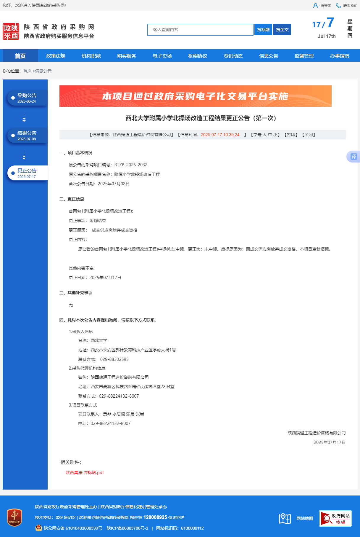 米兰网页版·官方端在线附属小学北操场改造工程结果更正公告(第一次)