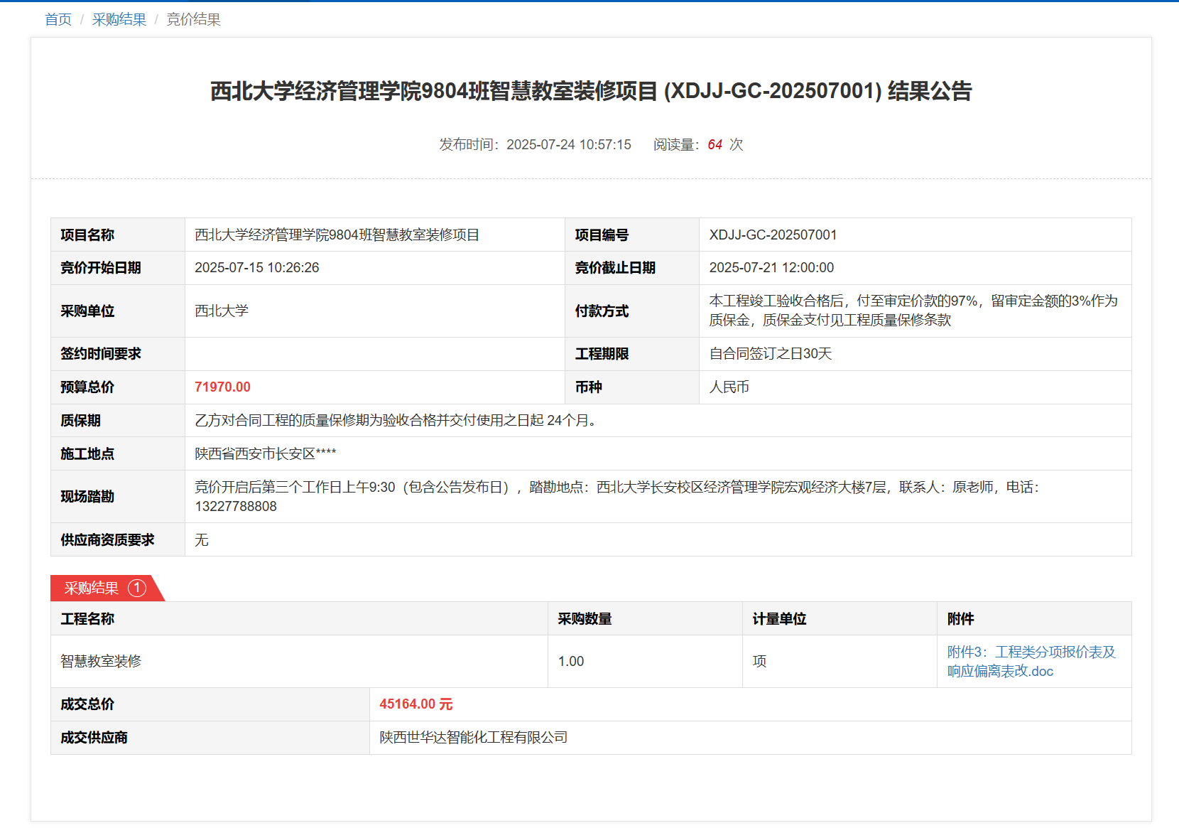 米兰网页版·官方端在线经济管理学院9804班智慧教室装修项目(XDJJ-GC-202507001)竞价结果公告 作者: 编辑: 时间:2025-07-24 原公告链接:https://www.ejingcai.com.cn/site/bidding/detail/19710