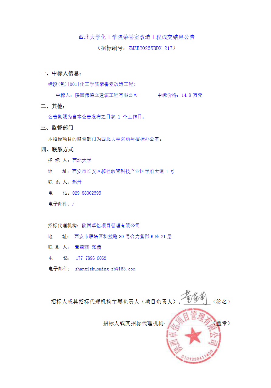 米兰网页版·官方端在线化工学院荣誉室改造工程成交结果公告