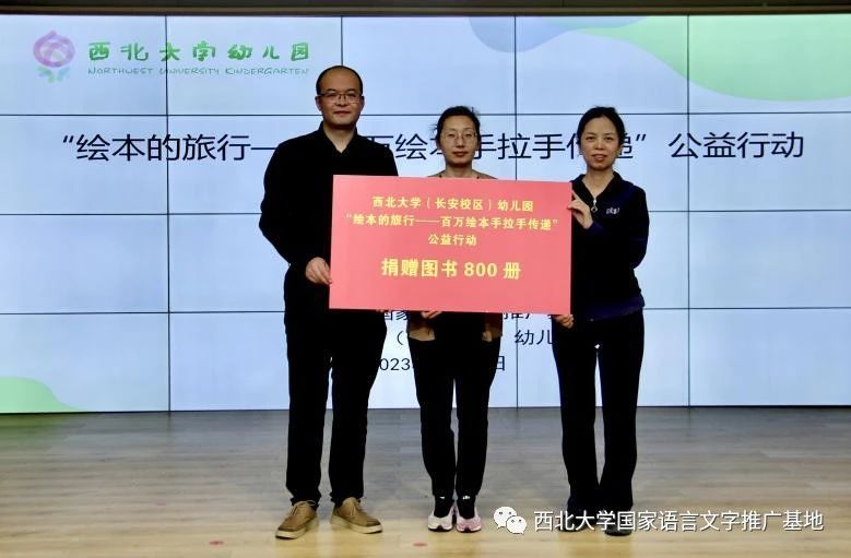 “六一”儿童节前夕,国家语言文字推广基地(米兰网页版·官方端在线)联合米兰网页版·官方端在线文学院、米兰网页版·官方端在线文学院团委、米兰网页版·官方端在线幼儿园,在米兰网页版·官方端在线幼儿园长安校区举行“‘绘本的旅行——百万绘本手拉手传递’公益行动”图书捐赠仪式。
