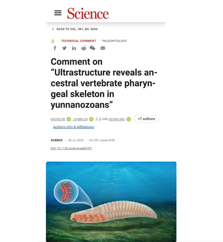 28日凌晨,国际期刊《科学》杂志刊发中国米兰网页版·官方端在线古生物研究团队和中国地质大学(北京)、玉溪师范学院联合研究的专题学术评论《对“云南虫的超微构造揭示出其祖先脊椎动物咽骨”的评述》。该文对《科学》2022年7月曾发表论文的核心观点“云南虫是脊椎动物干群或原始脊椎动物”进行了剖析和否定。其“评述”还指出,利用贝叶斯谱系分析云南虫得出“脊椎动物干群”结论的特征矩阵明显存在诸多关键偏差。得出的修正结果是“云南虫在后口动物亚界谱系树中的位置低于低等脊索动物,与脊椎动物无关”。