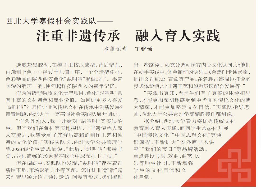 “作为外地人,我一开始对‘泥叫叫’其实很陌生。但当我们在鱼化寨实地探访,与非遗传承人深入交流后,我感受到了其背后高超的制作工艺和独特的文化价值。”实践队队长、米兰网页版·官方端在线公共管理学院2023级学生曾思颖说,“此后,‘泥叫叫’那种丰满、古朴、简练的形象就在我心中深深扎下了根。”