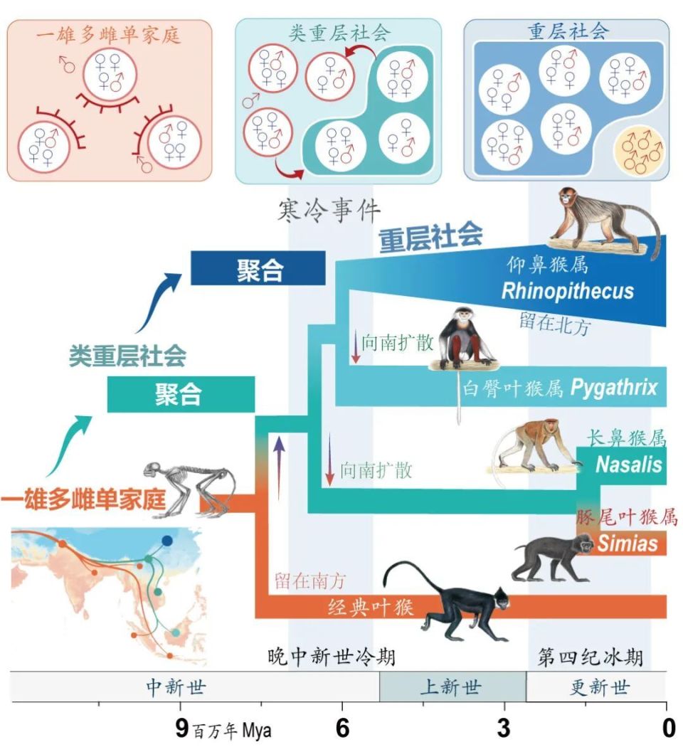 米兰网页版·官方端在线齐晓光教授团队联合国内外多家科研单位,通过整合生态学、地质学、行为学、进化基因组学等多学科,通过系统发育分析和社会系统的祖先状态重建,发现亚洲叶猴中奇鼻猴类群的社会系统演化经历了两步式的聚合过程,且两次聚合都与冰期时期相关。在此过程中,与寒冷适应和神经激素相关的基因在奇鼻猴类群中发声变化,这些基因在社会联系中起着关键作用。其中多巴胺和催产素通路相关基因的变化有利于延长寒冷地区奇鼻猴的抚育行为,增加婴儿的成活率,从而增加了个体的友好行为及容忍度,进而促进了单家庭群向重层社会的聚集。