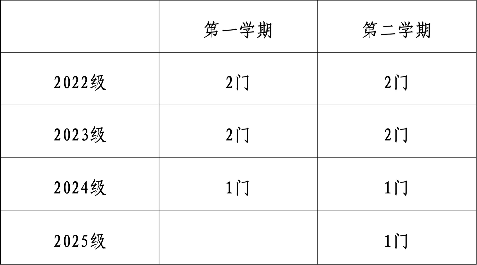 1.根据学校教学计划安排和教学资源设置情况,在选课门次上,一年级新生第一学期暂不修读通识教育选修课程,第二学期每人限选1门、二年级学生每人每学期限选1门、三年级和四年级学生可在上下两学期交错选课2门。具体可选课门次如下表所示:
