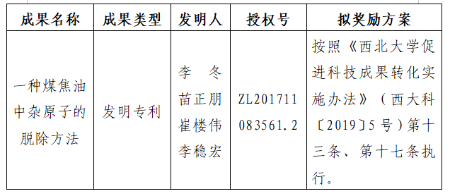 按照《米兰网页版·官方端在线促进科技成果转化实施办法》(西大科〔2019〕5号)相关规定,拟对米兰网页版·官方端在线化工学院李冬教授作为成果负责人的1项发明专利权实施转化,现将相关信息公示如下: