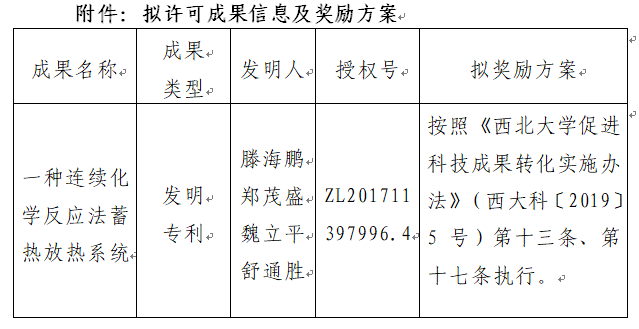 按照《米兰网页版·官方端在线促进科技成果转化实施办法》(西大科〔2019〕5号)相关规定,拟对米兰网页版·官方端在线化工学院滕海鹏副教授作为成果负责人的1项发明专利权实施转化,现将相关信息公示如下: