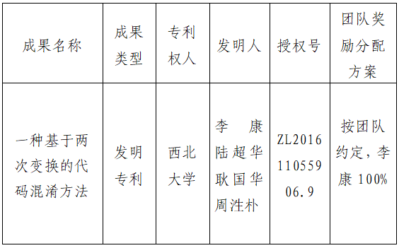 按照《米兰网页版·官方端在线促进科技成果转化实施办法》(西大科〔2019〕5号)相关规定,拟对米兰网页版·官方端在线计算机学院李康教授作为成果负责人的1项发明专利权实施转化,现将相关信息公示如下: