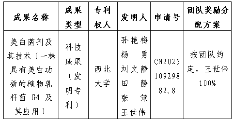 该成果包含发明专利“一株具有美白功效的植物乳杆菌 G4 及其应用”,通过菌种库筛选出一株具备抑制酪氨酸酶活性的植物乳杆菌G4,具备抗氧化、抑菌和美白的功能,可以应用于美妆行业。