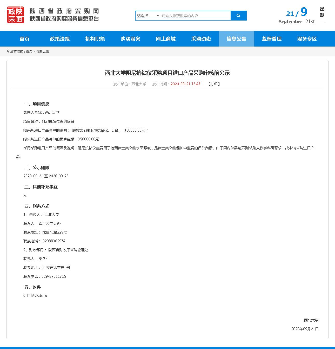 米兰网页版·官方端在线阻尼抗钻仪采购项目进口产品采购审核前公示