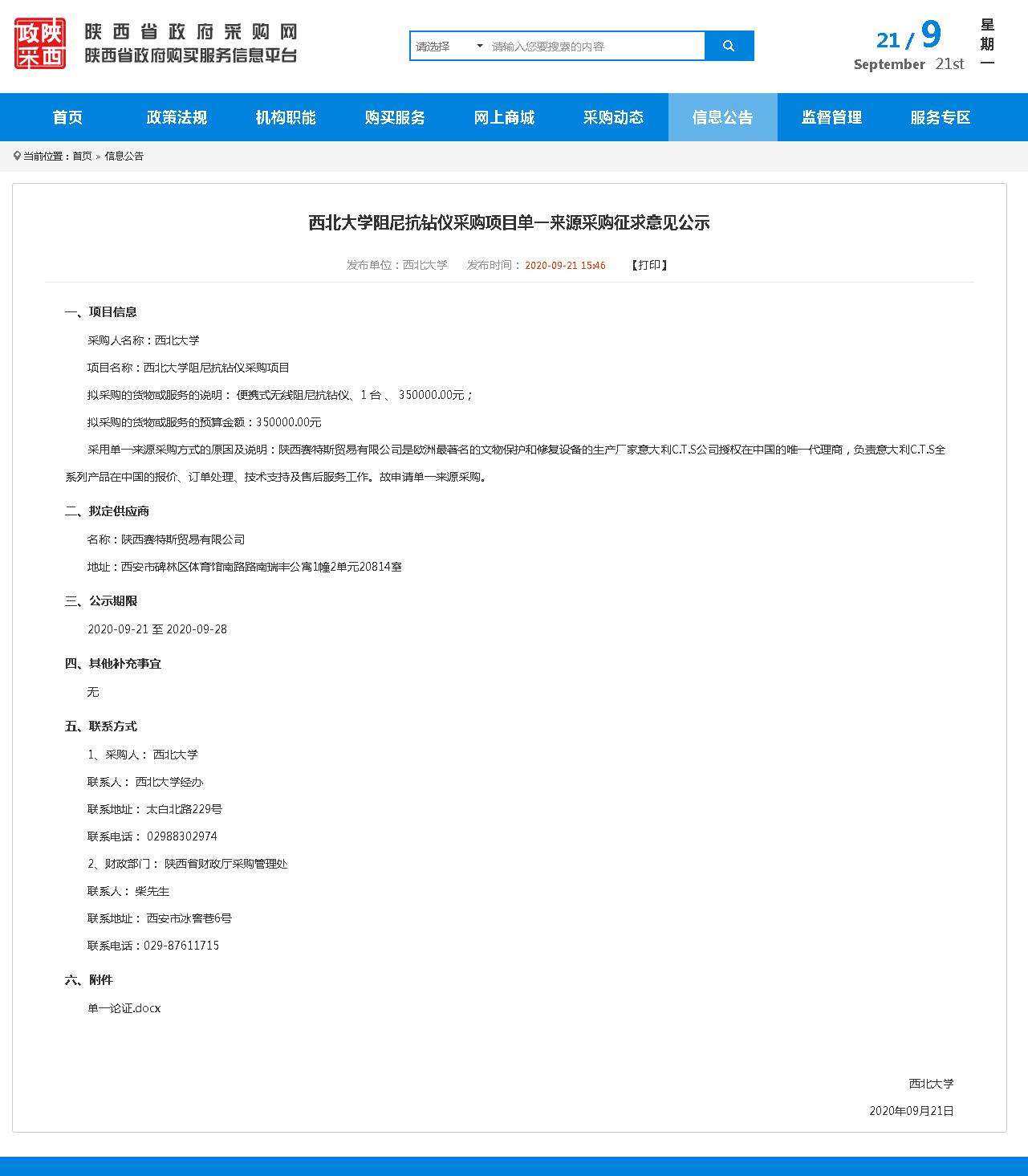 米兰网页版·官方端在线阻尼抗钻仪采购项目进口产品采购审核前公示