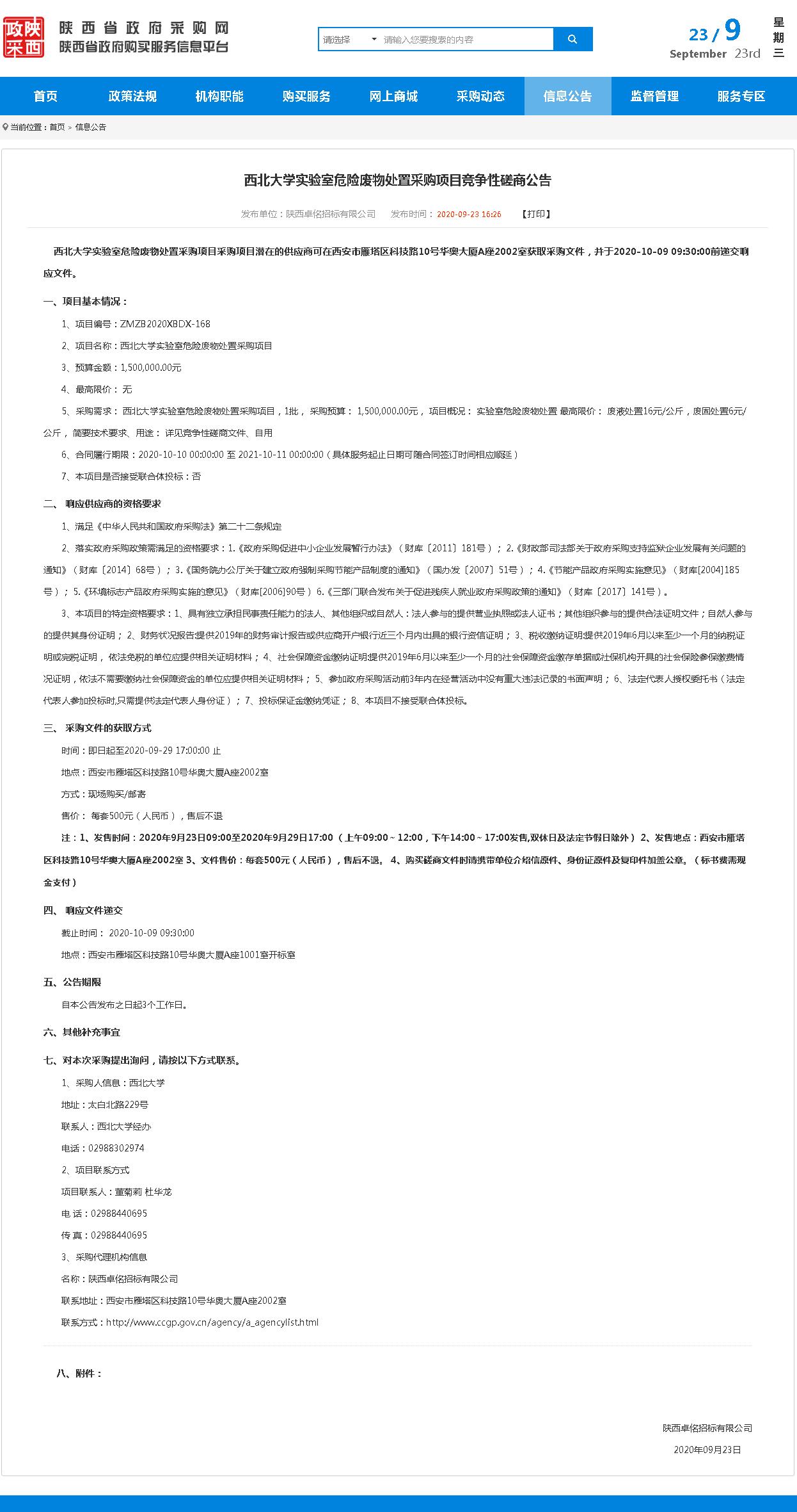 米兰网页版·官方端在线实验室危险废物处置采购项目竞争性磋商公告