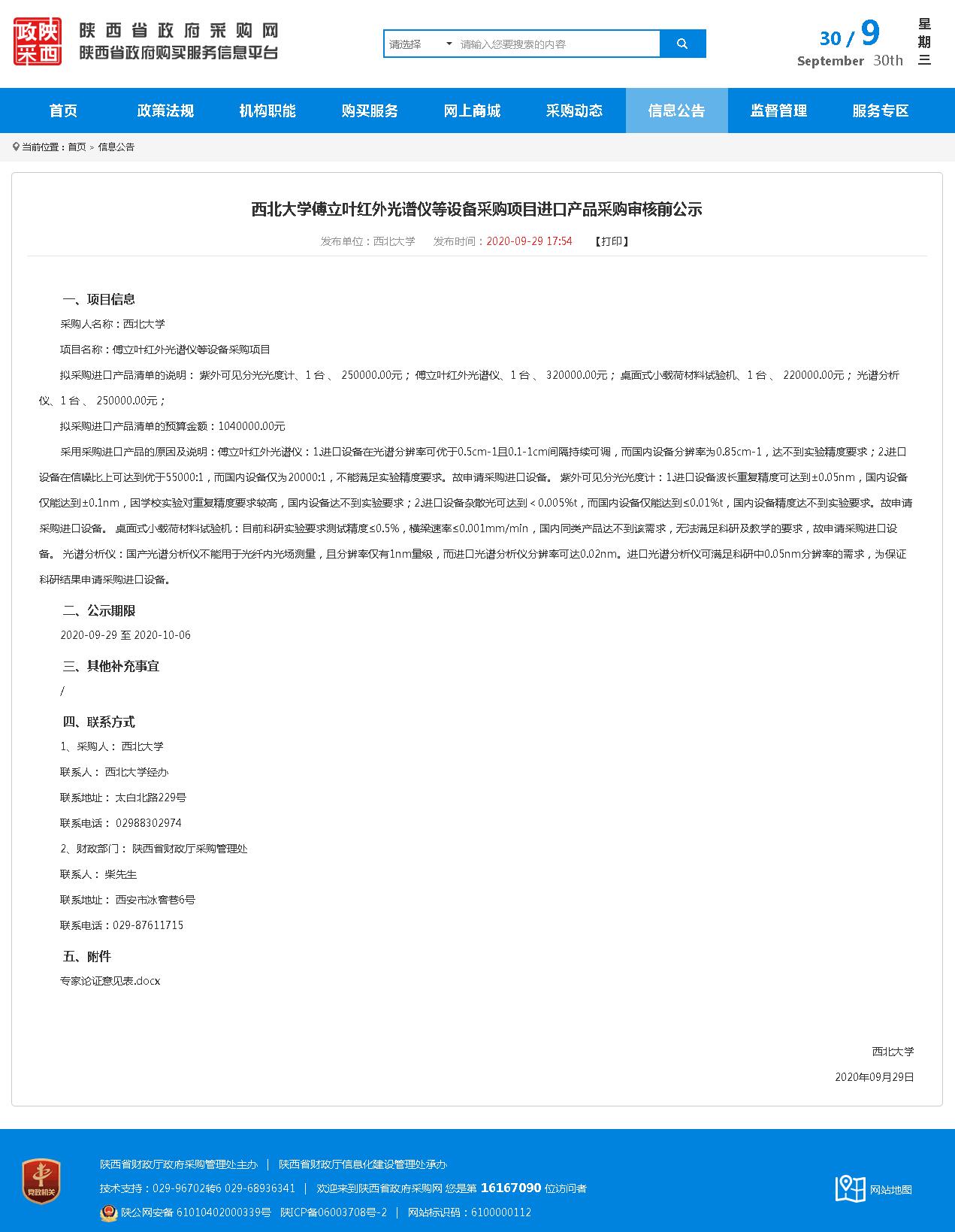 米兰网页版·官方端在线傅立叶红外光谱仪等设备采购项目进口产品采购审核前公示