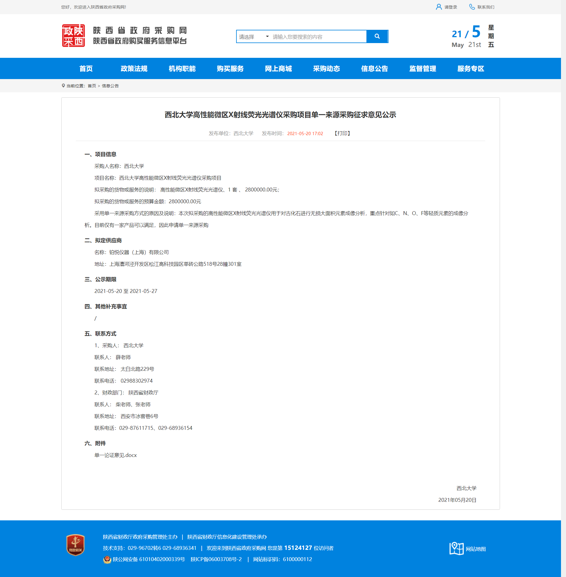 米兰网页版·官方端在线高性能微区X射线荧光光谱仪采购项目单一来源采购征求意见公示 作者: 编辑:薛利娟 时间:2021-05-21 原公告地址:http://www.ccgp-shaanxi.gov.cn/notice/noticeDetail.do?noticeguid=8a85be33791baa0f017988e9e37e11b3