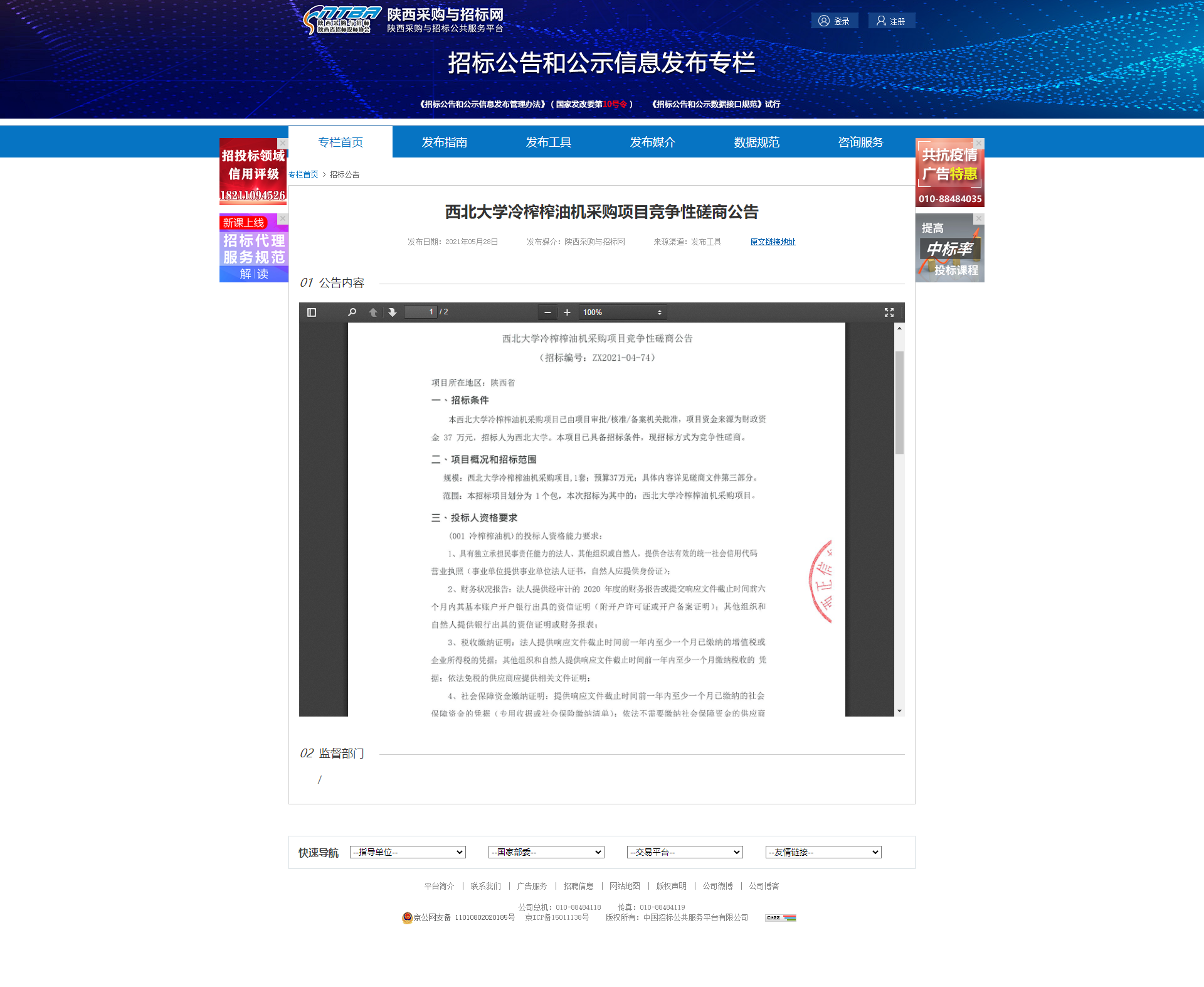 米兰网页版·官方端在线冷榨榨油机采购项目竞争性磋商公告 作者: 编辑:薛利娟 时间:2021-05-28 原公告地址:http://bulletin.sntba.com/biddingBulletin/2021-05-28/302428.html