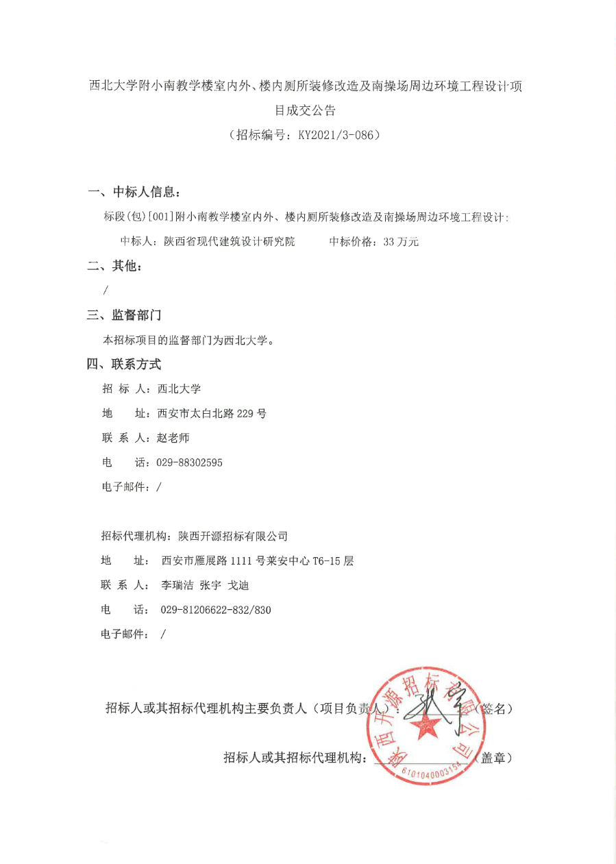 米兰网页版·官方端在线附小南教学楼室内外、楼内厕所装修改造及南操场周边环境工程设计项目成交公告