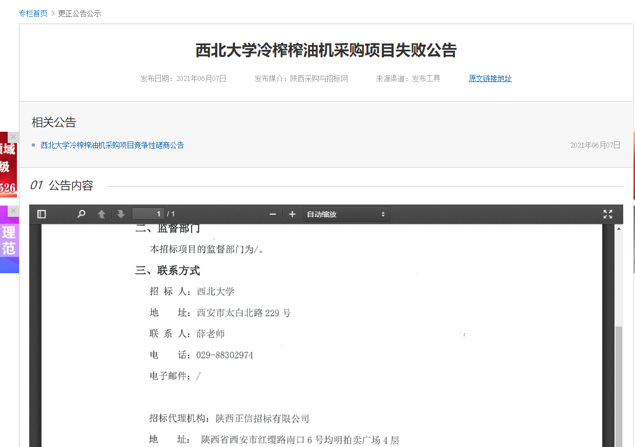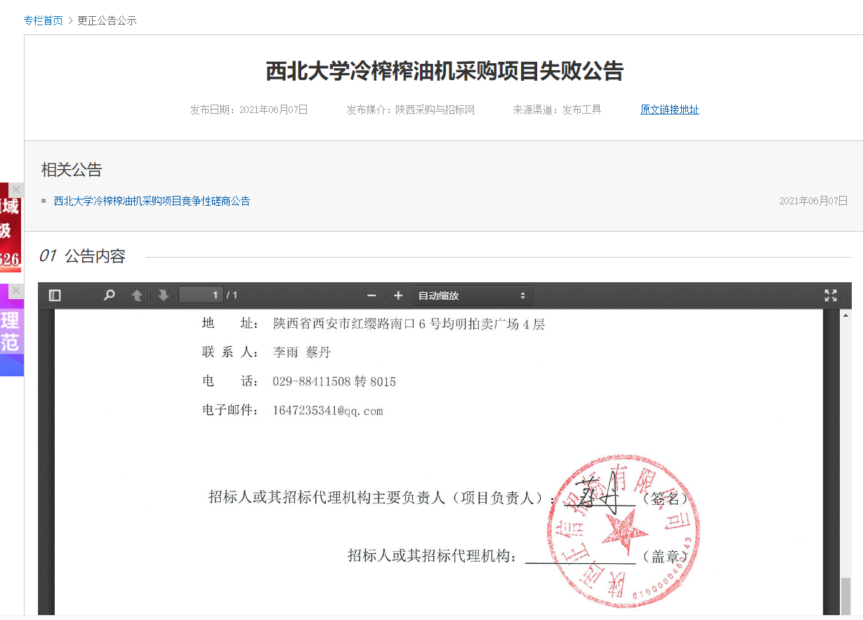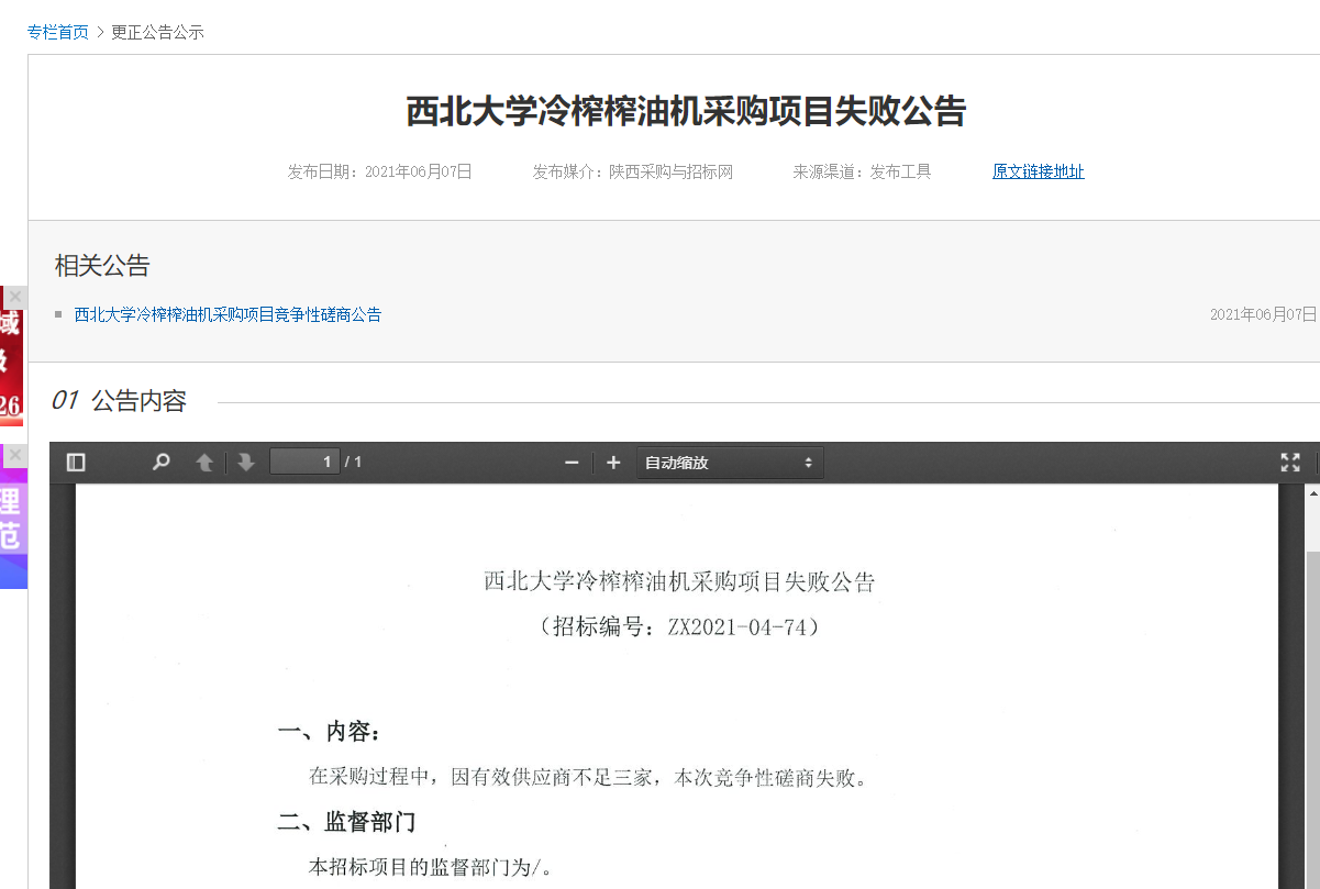 米兰网页版·官方端在线冷榨榨油机采购项目失败公告 作者: 编辑:薛利娟 时间:2021-06-07 原公告地址:http://bulletin.sntba.com/changeBulletin/2021-06-07/305152.html