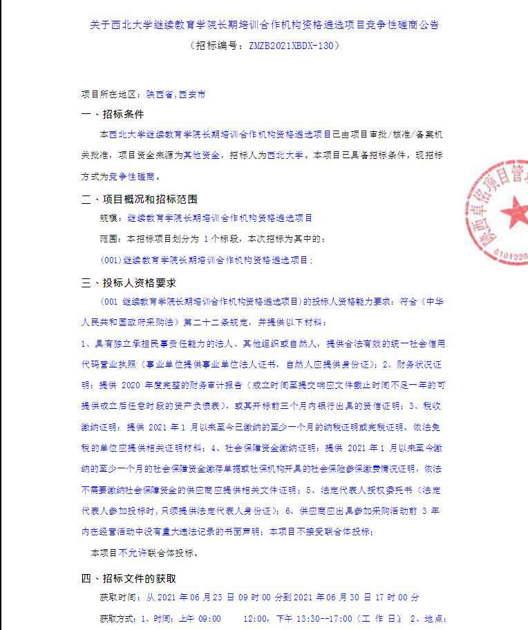米兰网页版·官方端在线继续教育学院短期培训合作机构资格遴选项目竞争性磋商公告