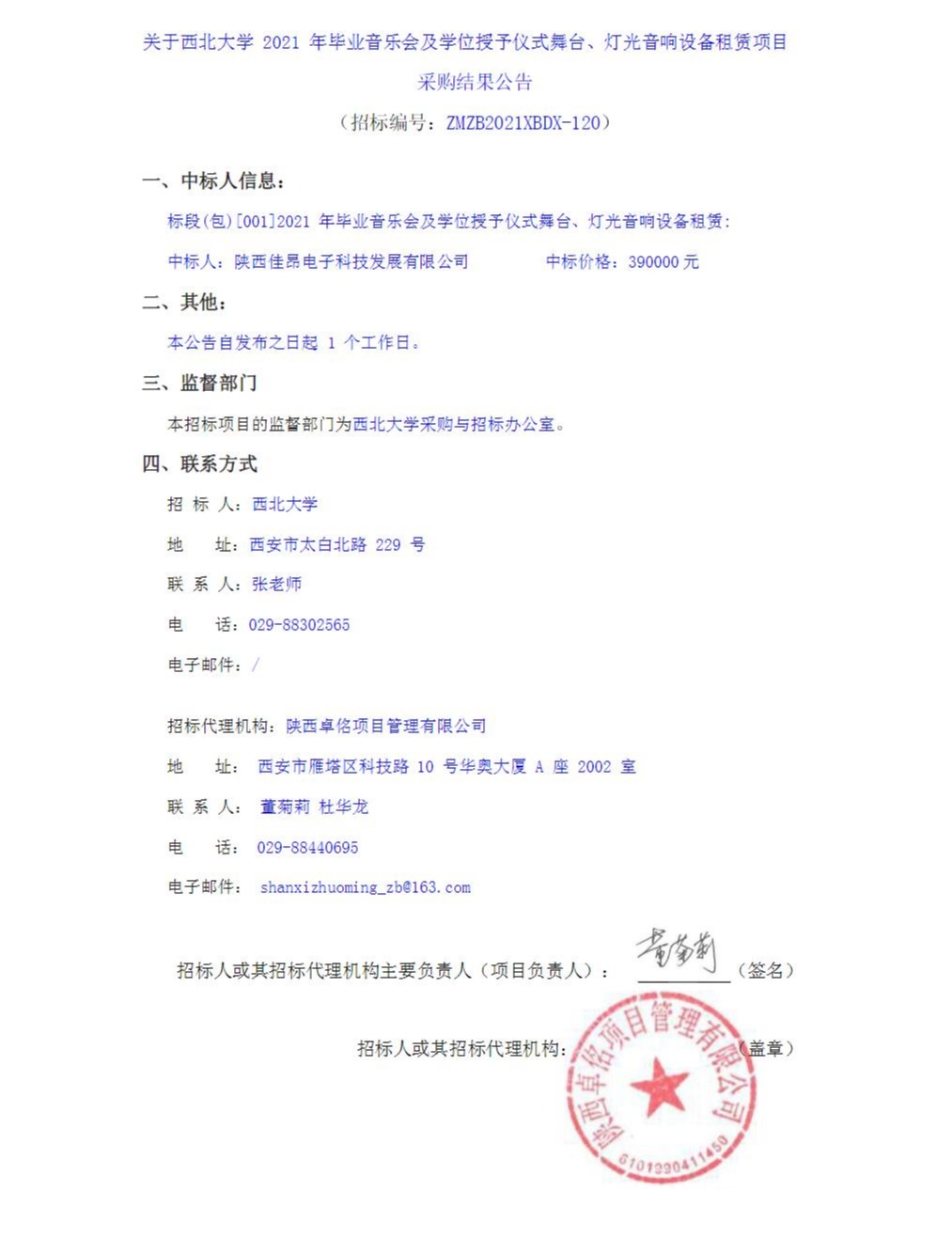 关于米兰网页版·官方端在线2021年毕业音乐会及学位授予仪式舞台、灯光音响设备租赁项目采购结果公告
