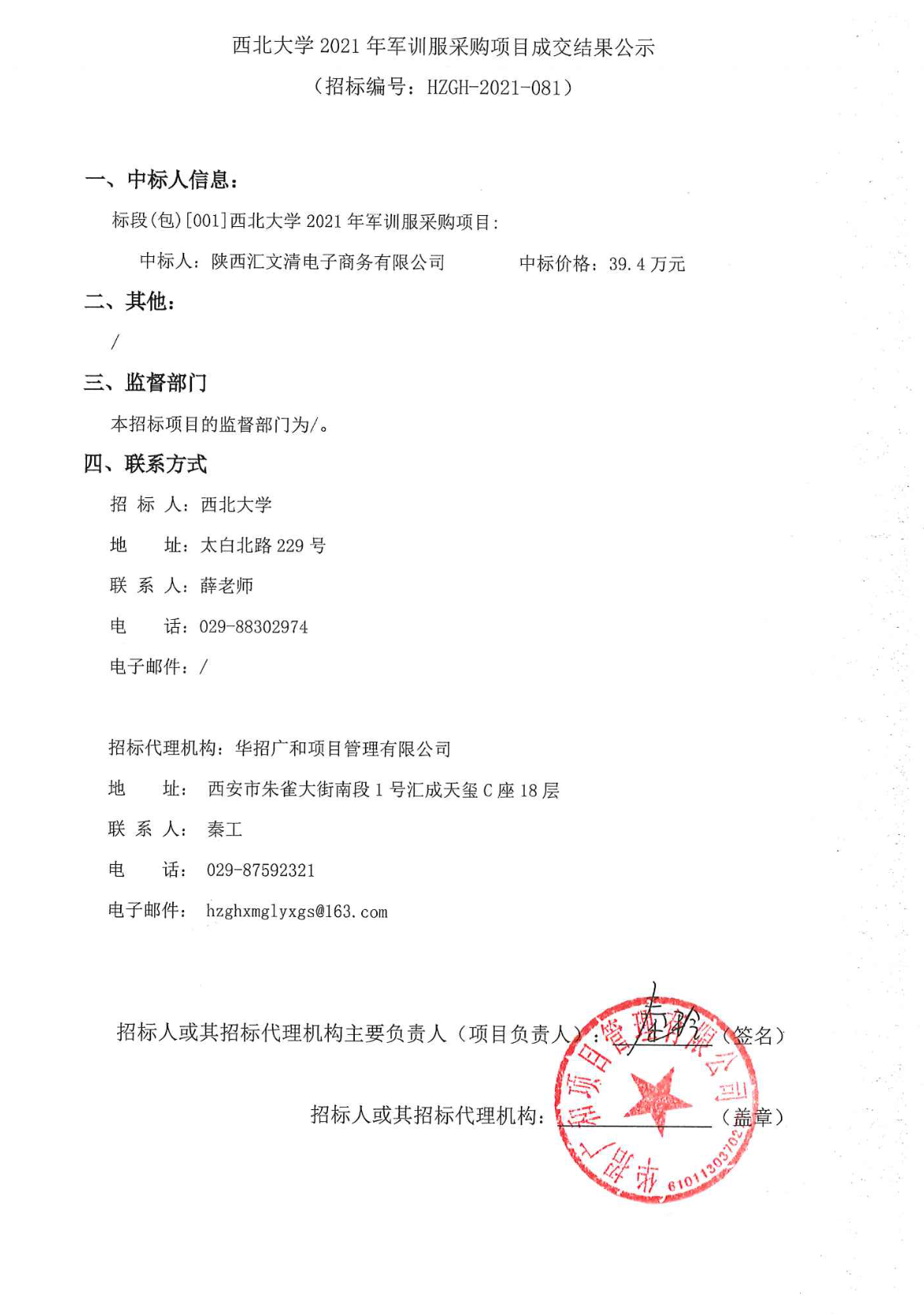 米兰网页版·官方端在线2021年军训服采购项目成交结果公示