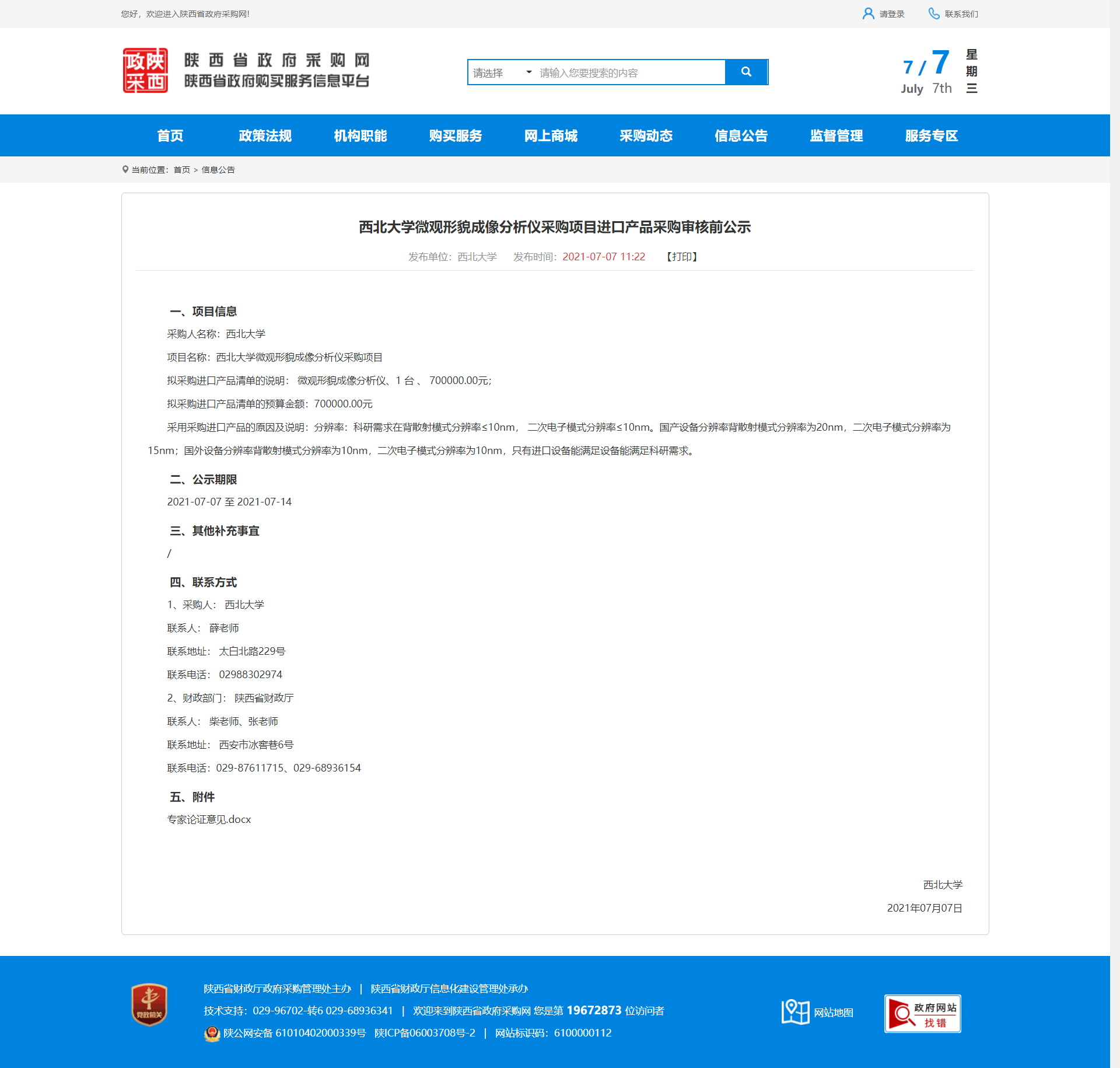 米兰网页版·官方端在线微观形貌成像分析仪采购项目进口产品采购审核前公示 作者: 编辑:采购与招标办公室 时间:2021-07-07 原公告地址:http://www.ccgp-shaanxi.gov.cn/notice/noticeDetail.do?noticeguid=8a85be337a79620e017a7e92b5872d92