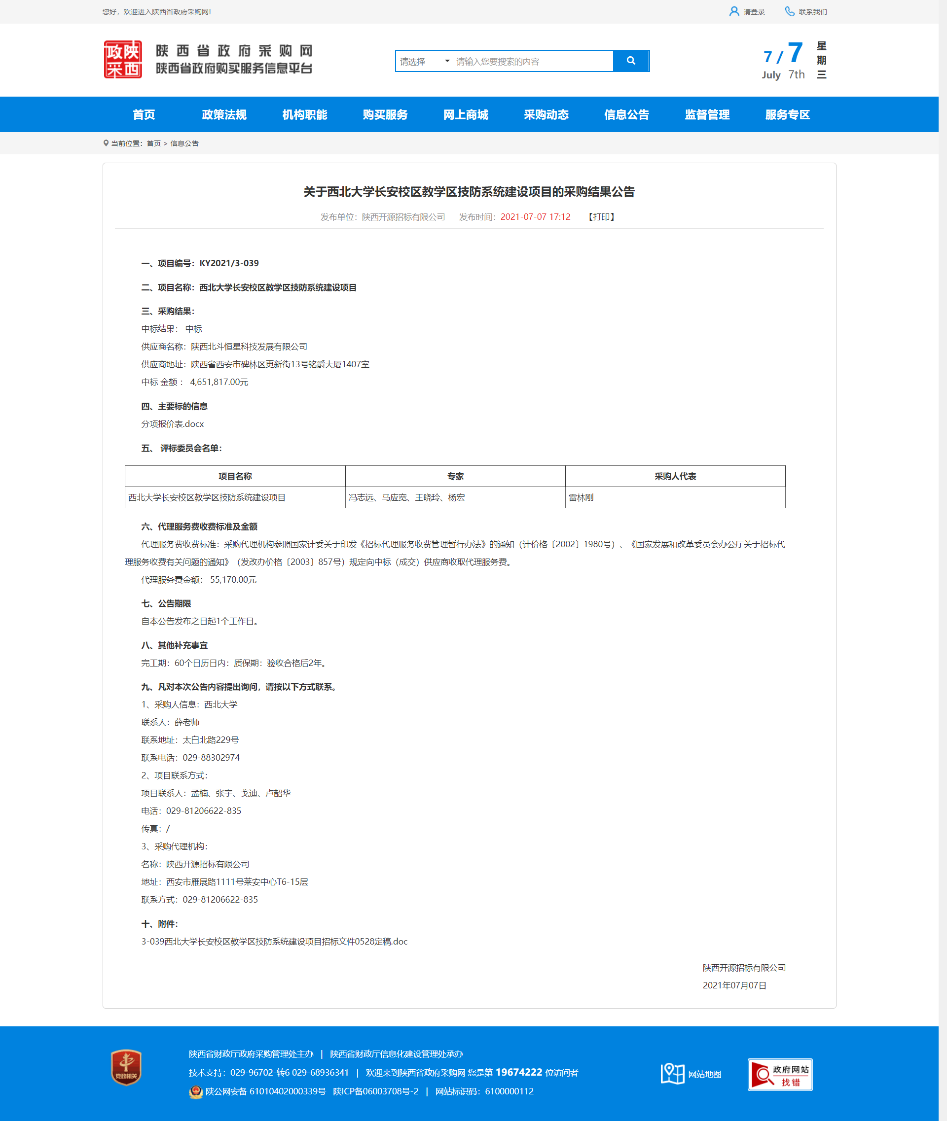 关于米兰网页版·官方端在线长安校区教学区技防系统建设项目的采购结果公告 作者: 编辑:采购与招标办公室 时间:2021-07-07 原公告地址:http://www.ccgp-shaanxi.gov.cn/notice/noticeDetail.do?noticeguid=8a85be337a79620e017a7fff10cb41ef