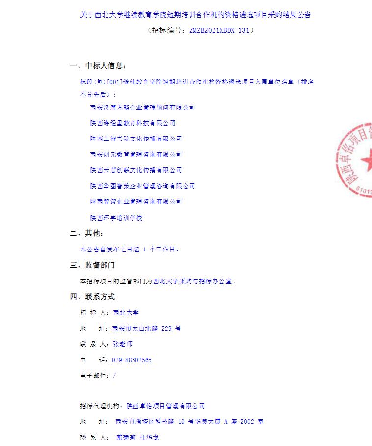 关于米兰网页版·官方端在线继续教育学院短期培训合作机构资格遴选项目采购结果公告