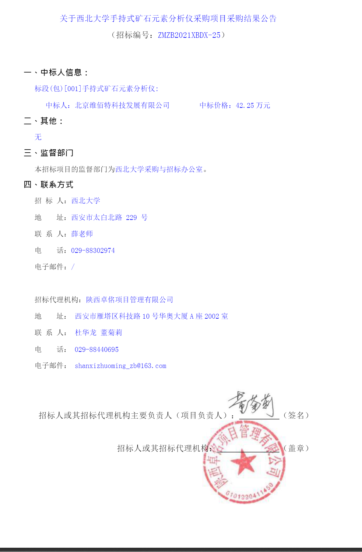 关于米兰网页版·官方端在线手持式矿石元素分析仪采购项目采购结果公告